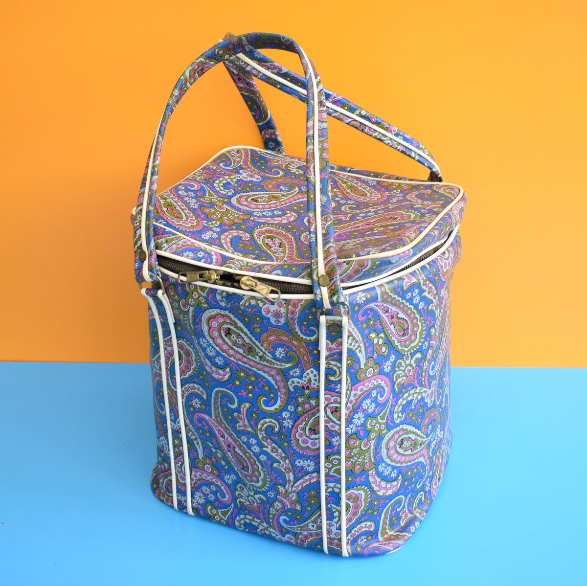 Vintage 1960s Vinyl Cool / Storage Bag - Paisley Purple