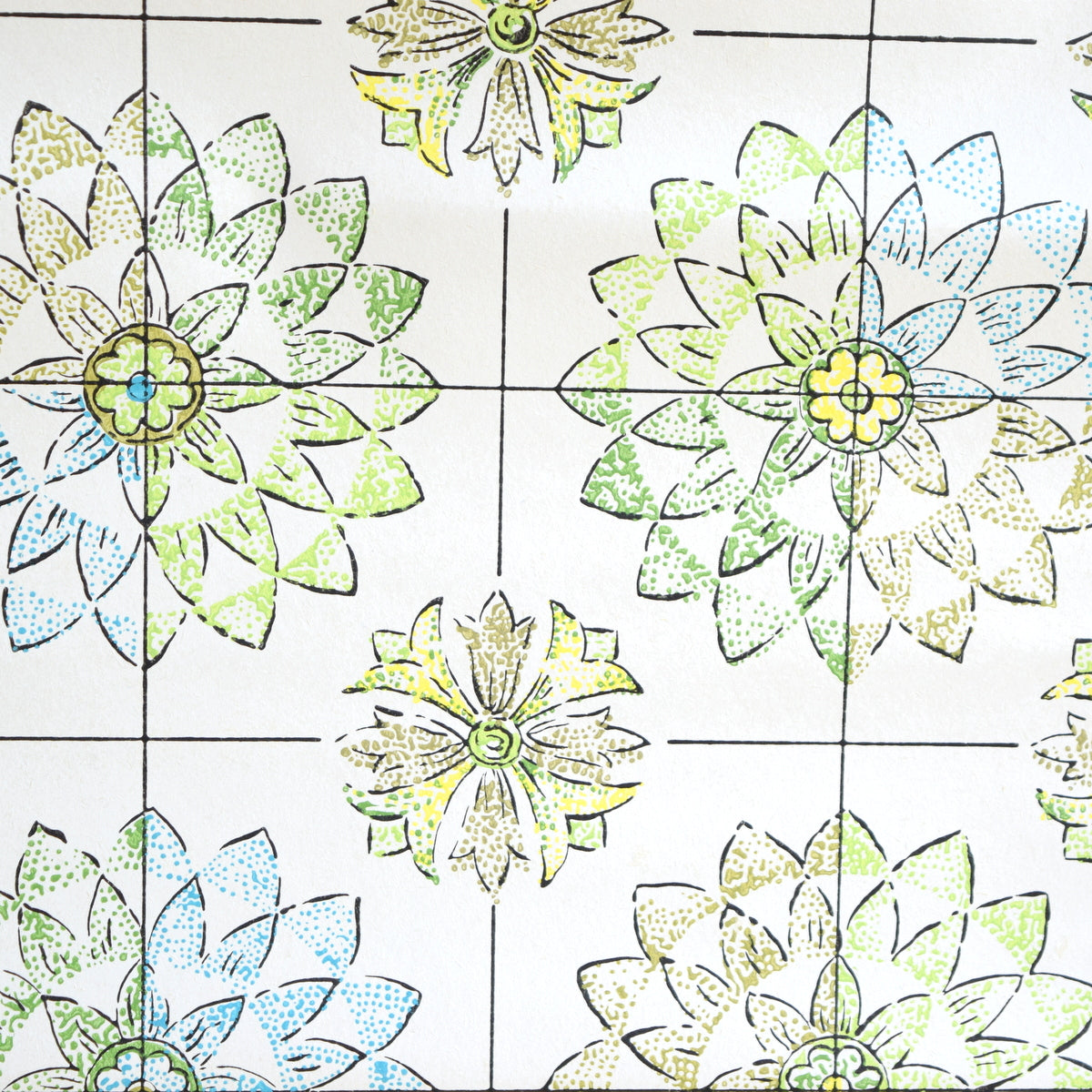 Vintage 1960s Vinyl Wallpaper - Atomic Star / Sunburst - Green / Blue