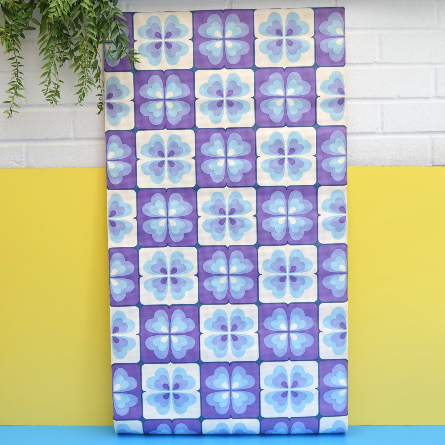 Vintage 1960s Vinyl Wallpaper - Purple Geo Flower