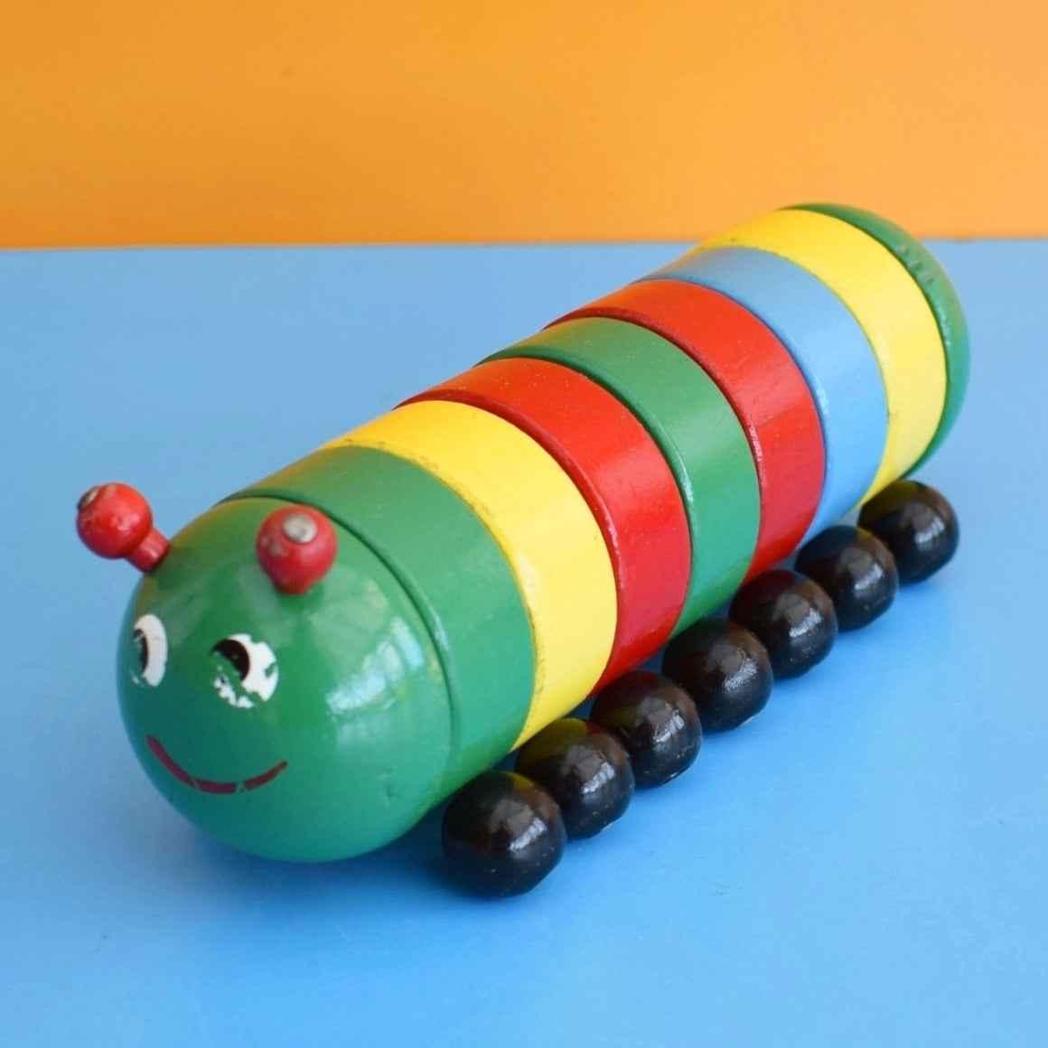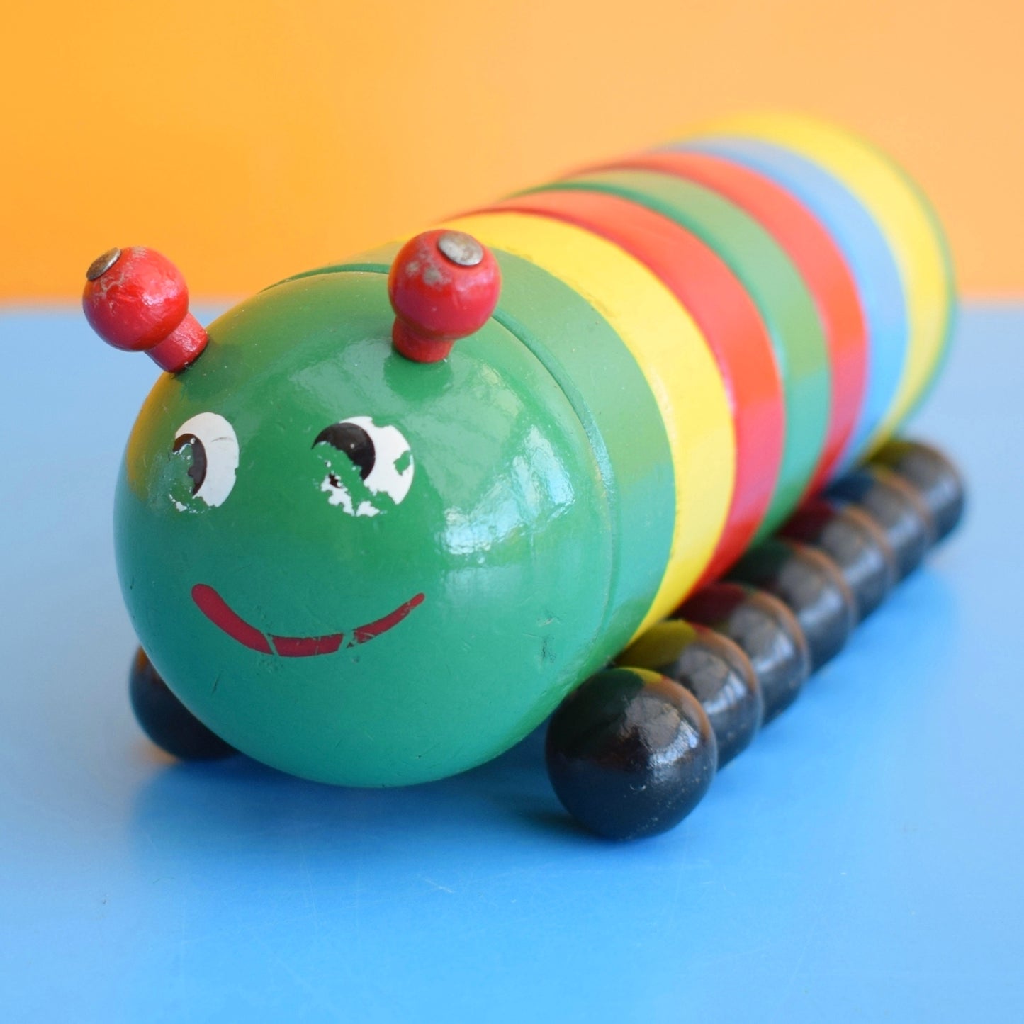 Vintage 1960s Wooden Brio Caterpillar Toy - Bright Colours - Freddy