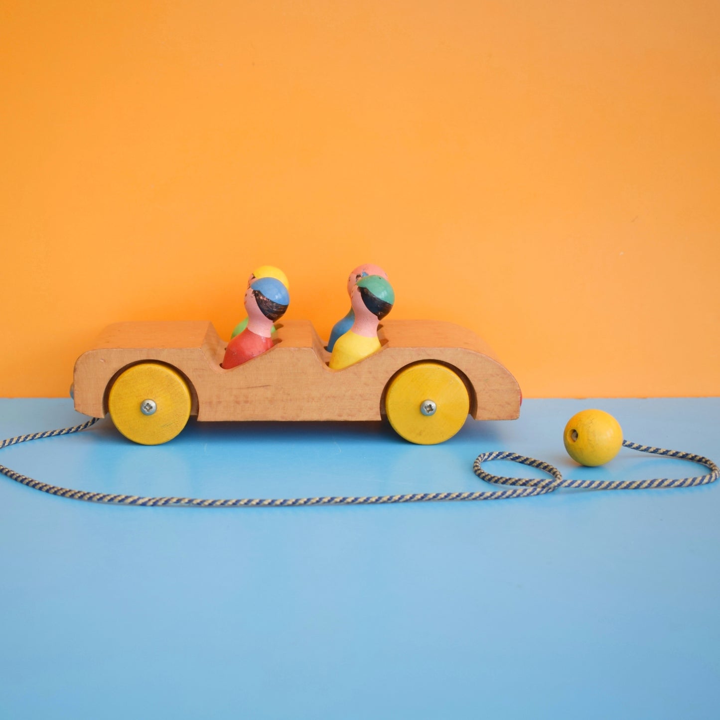 Vintage 1960s Wooden Toy Car & People - NicolToys