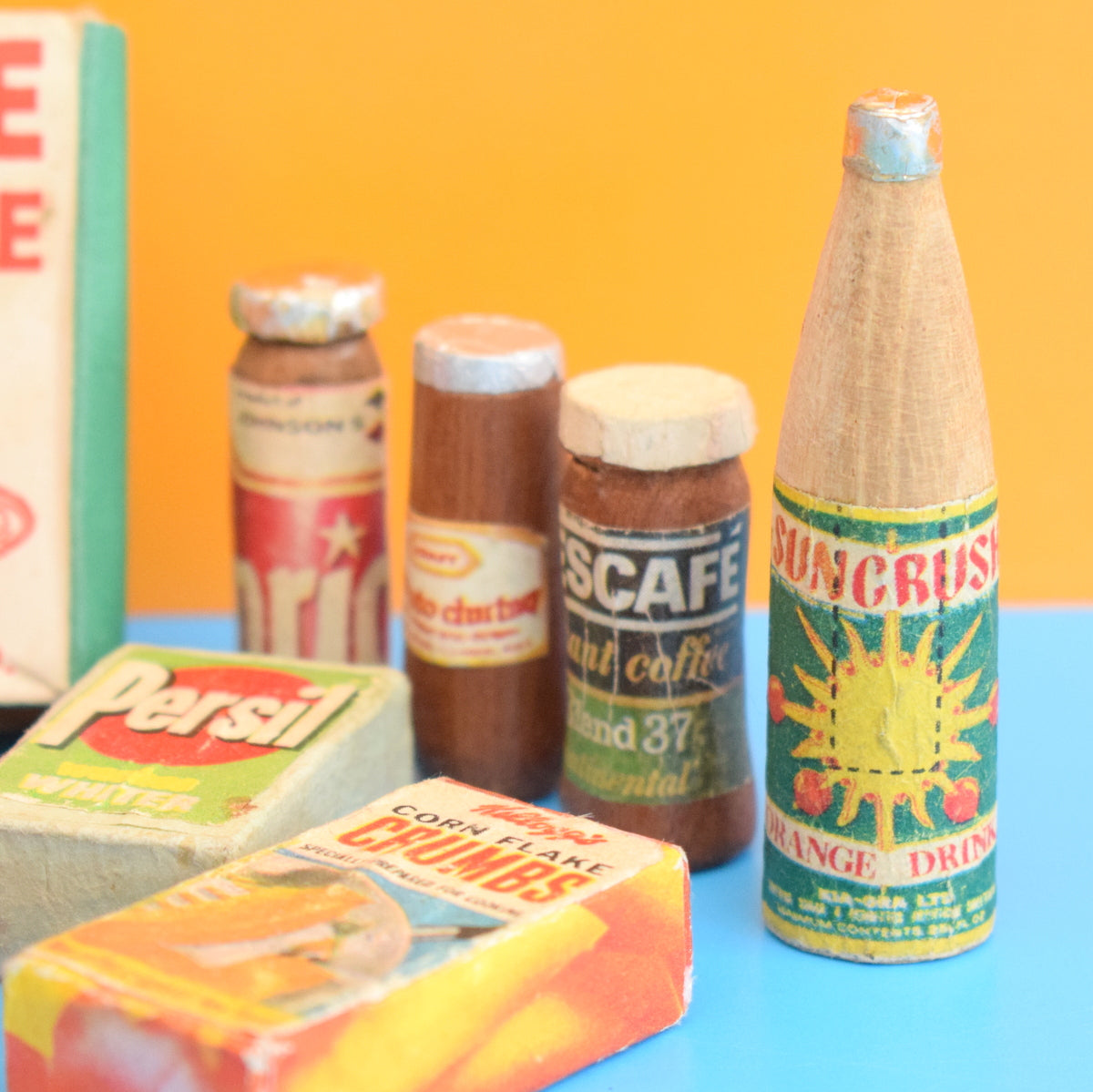 Vintage 1960s Wooden Toy Food Packets / Bottles - Homemade