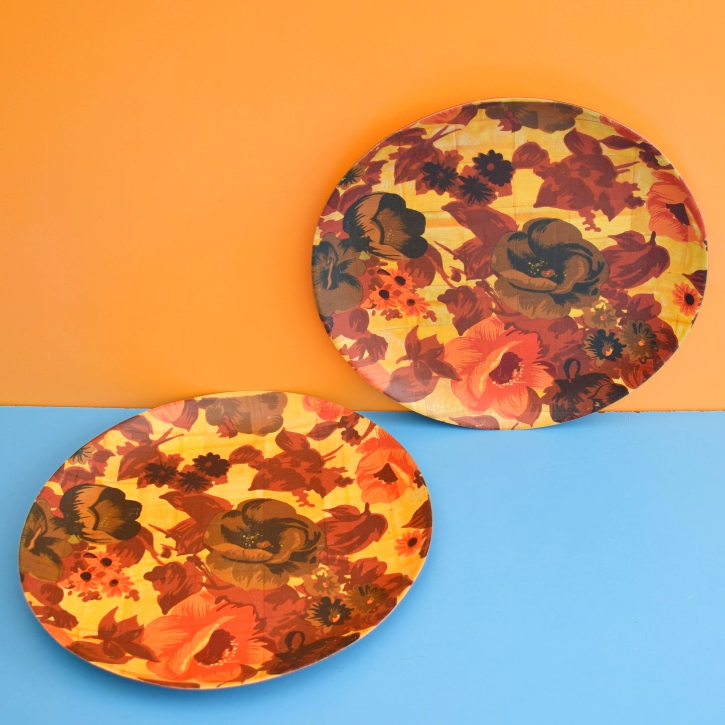 Vintage 1960s Wooden Trays - Flower Power Retro