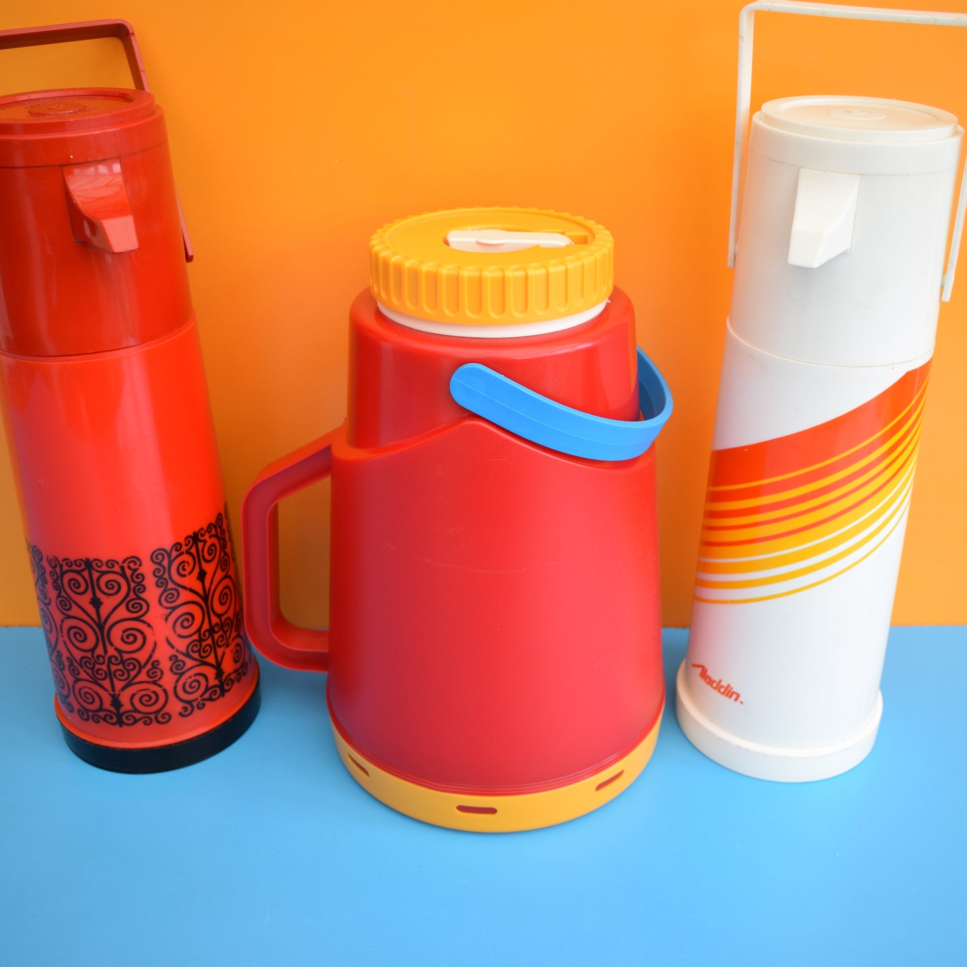 Vintage 1980s Air Pump Flasks - Orange / Red