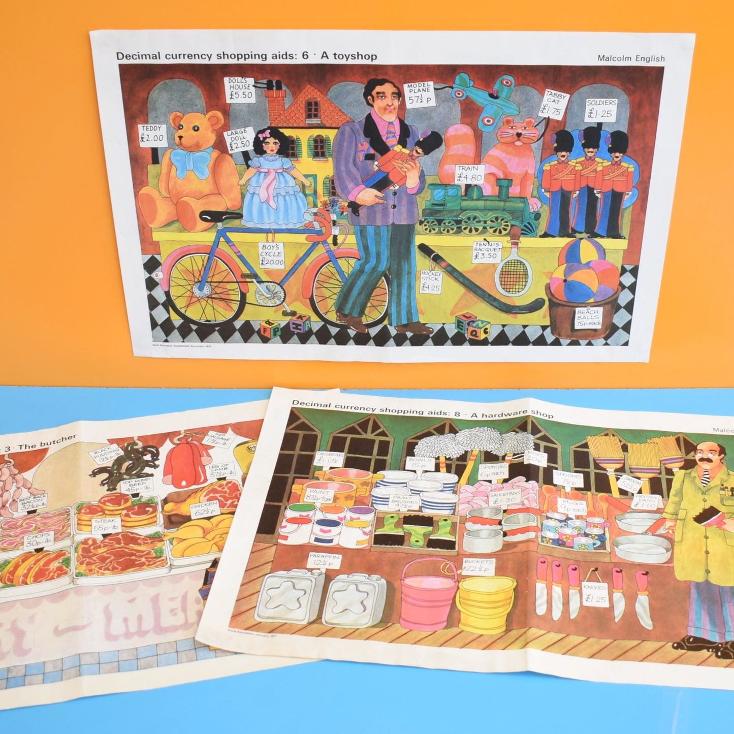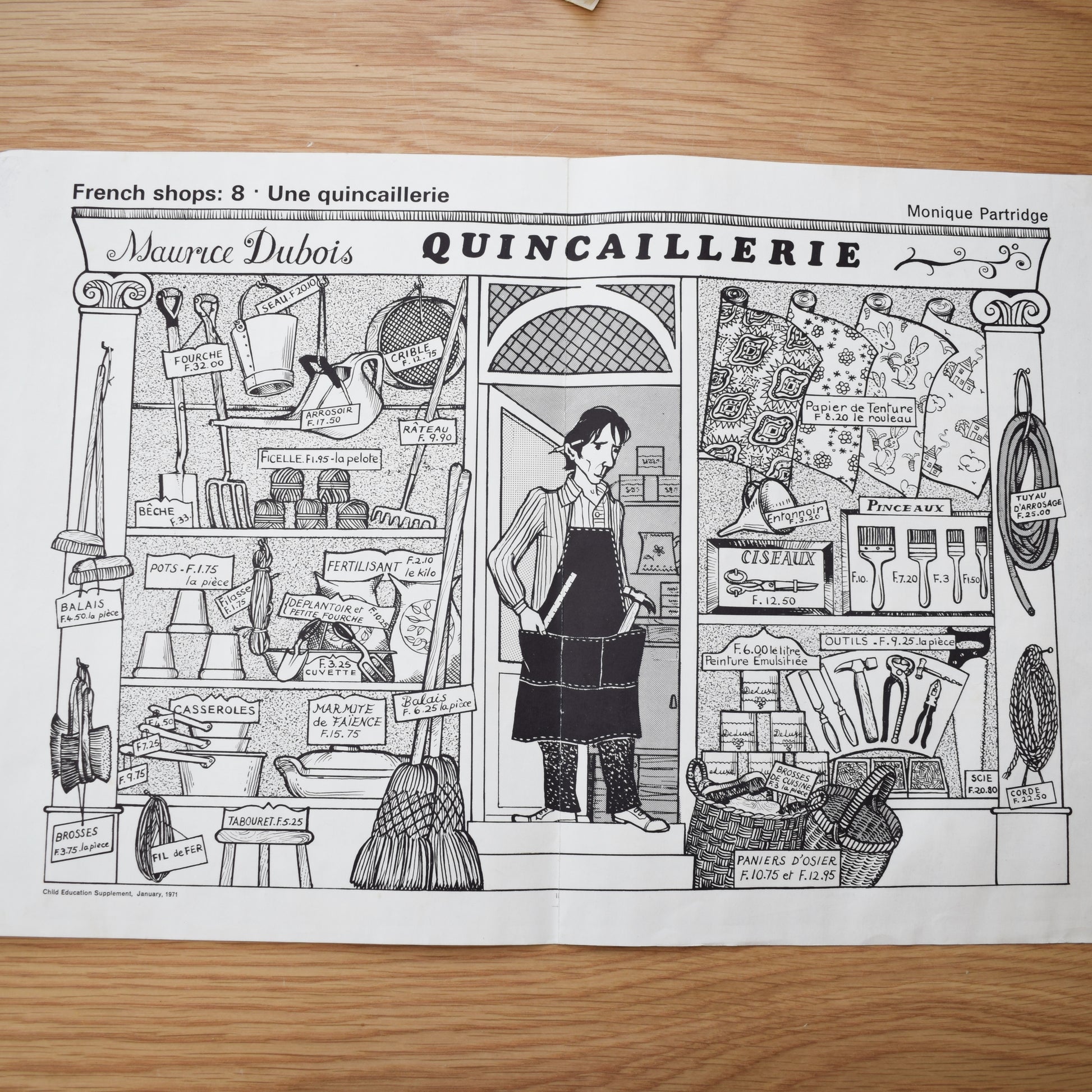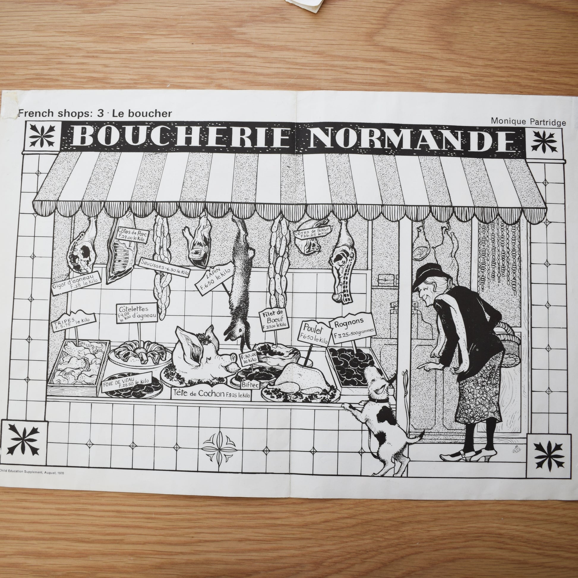 I've had them for about 10 years (mostly because i forgot i had them)! they are posters from a 1970s Child Education supplement, illustrated by Malcolm English (hes kinda a big deal) the backs are designed by Monique Partridge and in French
