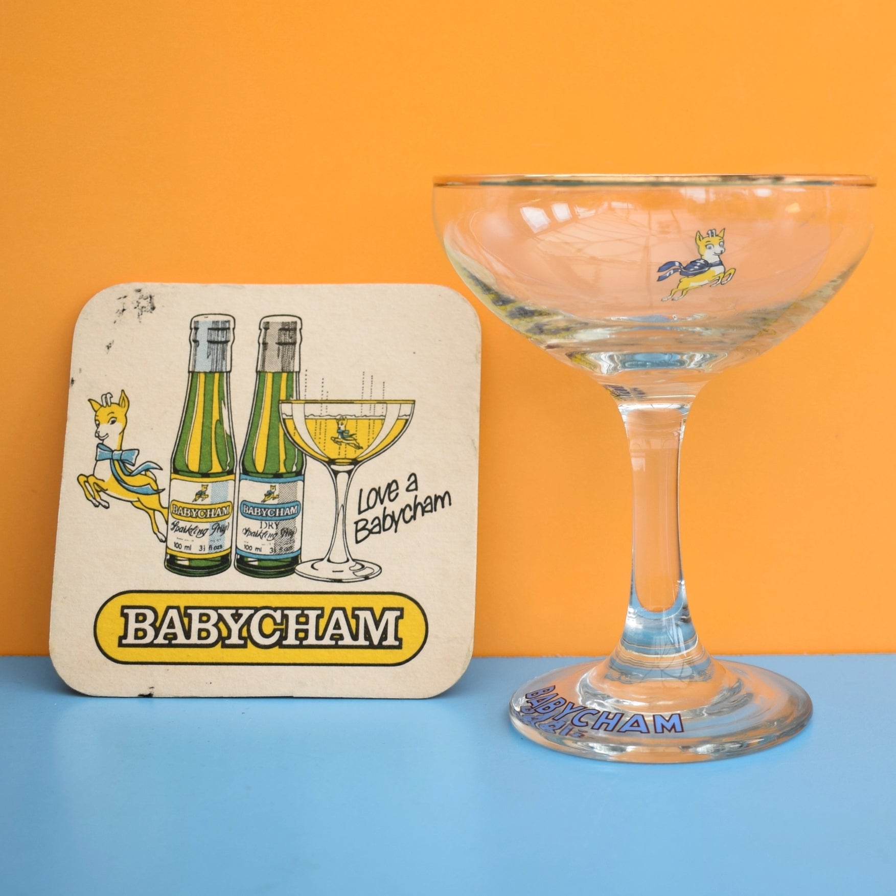 Vintage 1970s Babycham Sq Coaster & Glass