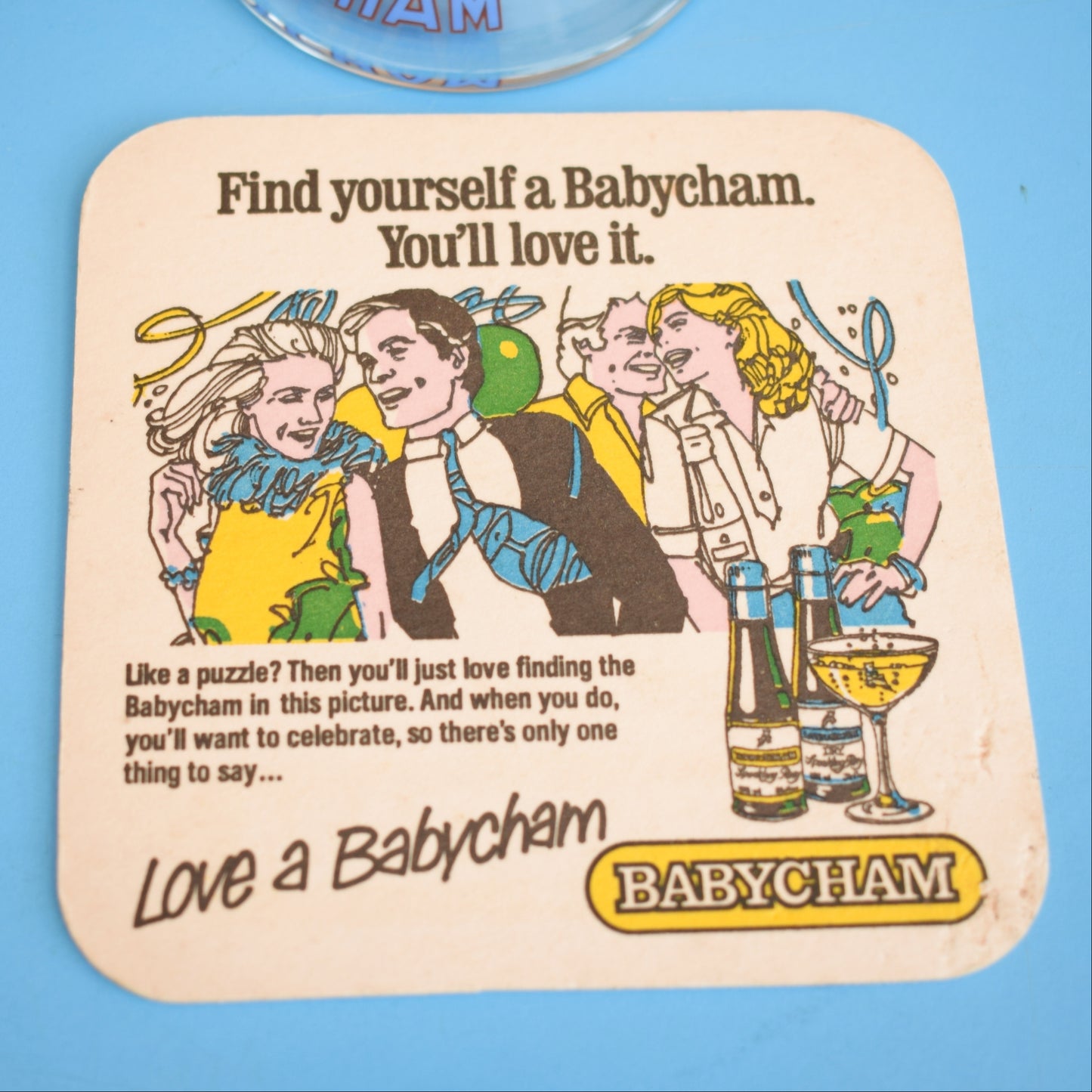 This vintage Babycham drinks mat and single glass would be great to display on any bar.