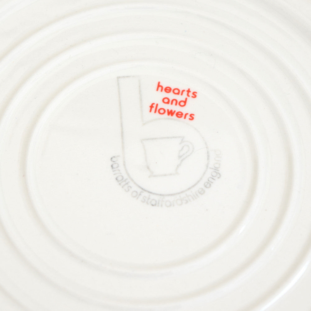 6 Vintage 1970s Barratts China Heart & Flowers Mugs, Red & Green