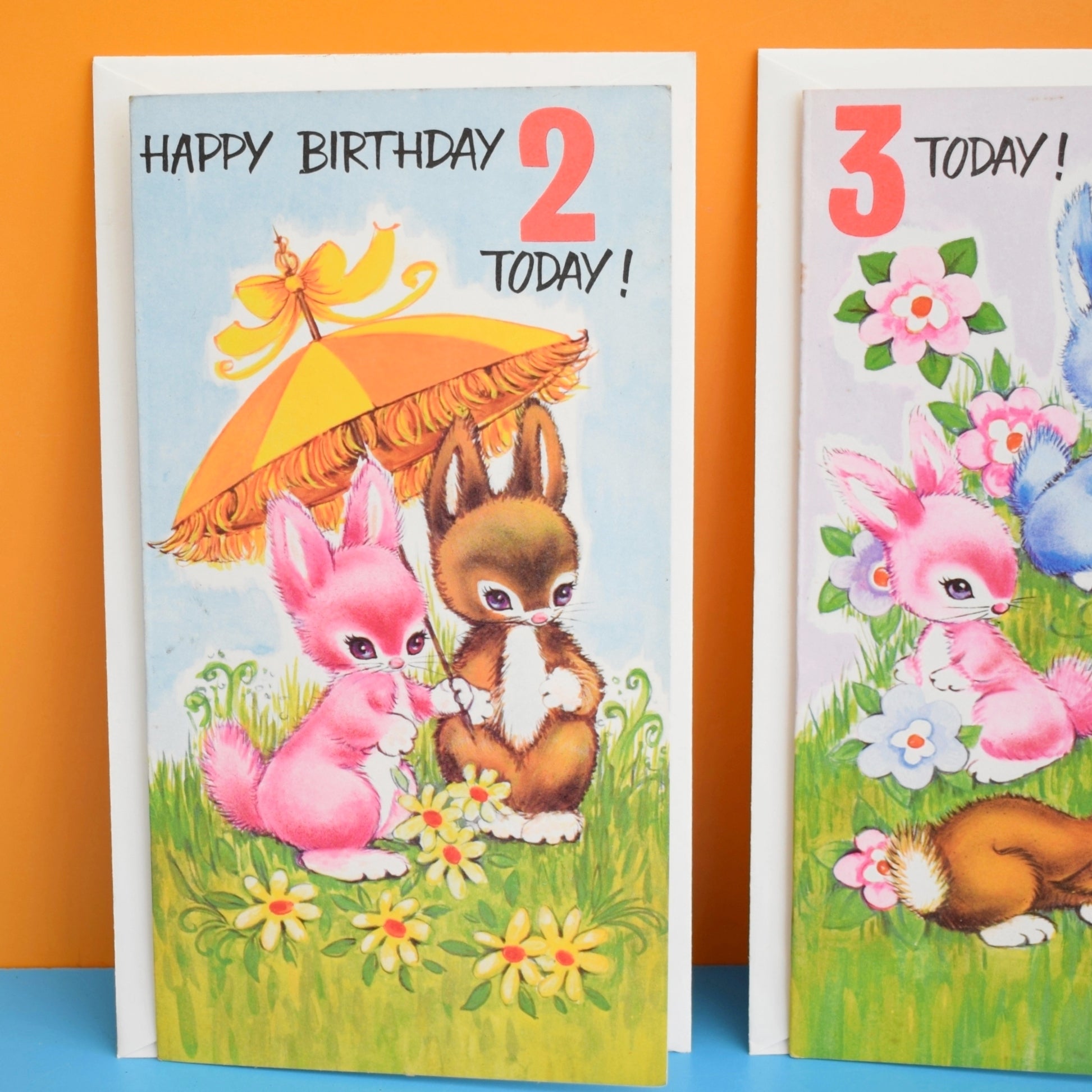 Vintage 1970s Birthday Greeting Cards - Ages 2-5 - Unused