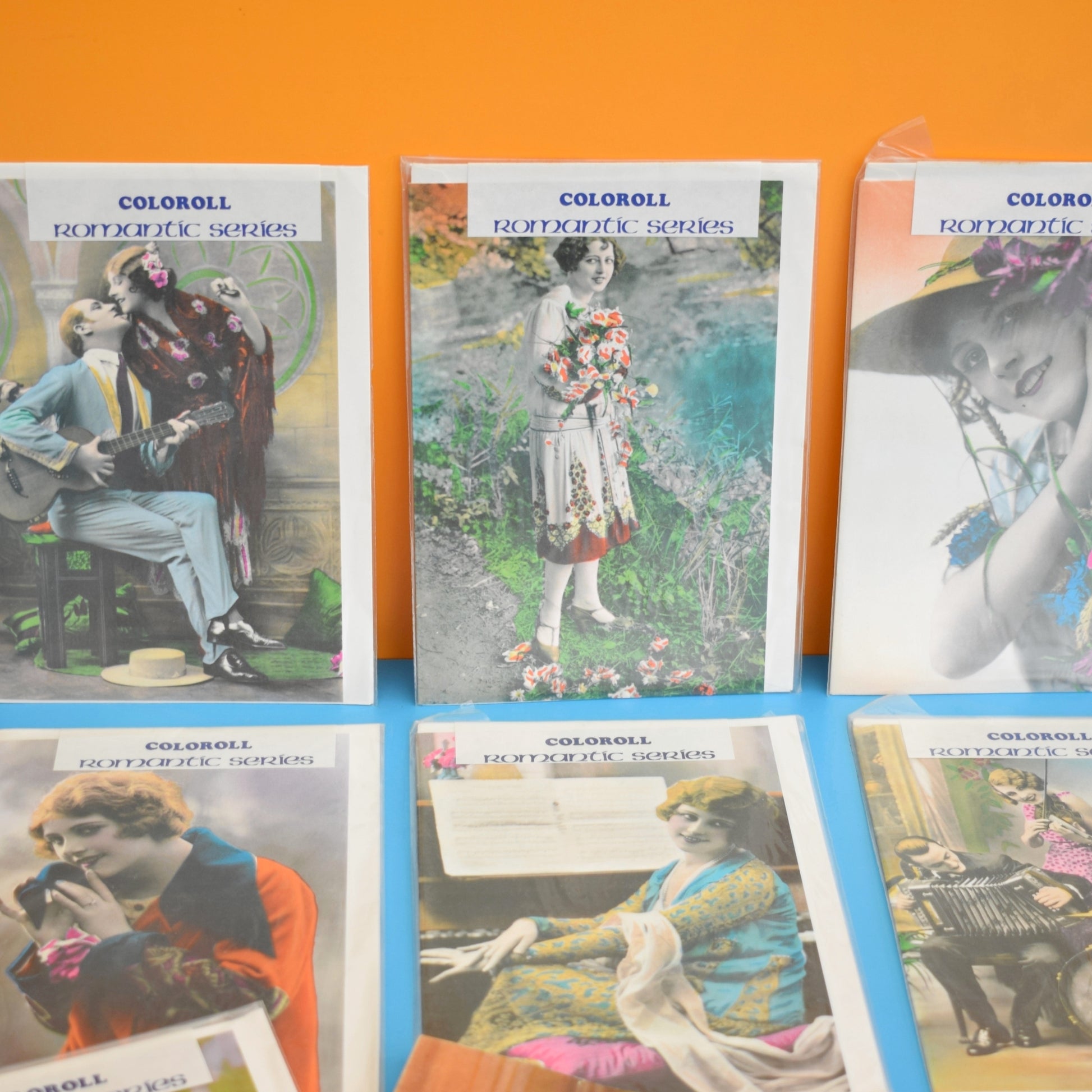Created for display and creative reuse, these cards offer bright colours and nostalgic charm that suit framing, scrapbooking, collage projects, and decorative displays. A delightful slice of mid-century design from Coloroll, perfect for collectors or DIY restorers seeking authentic ephemera with vintage appeal.