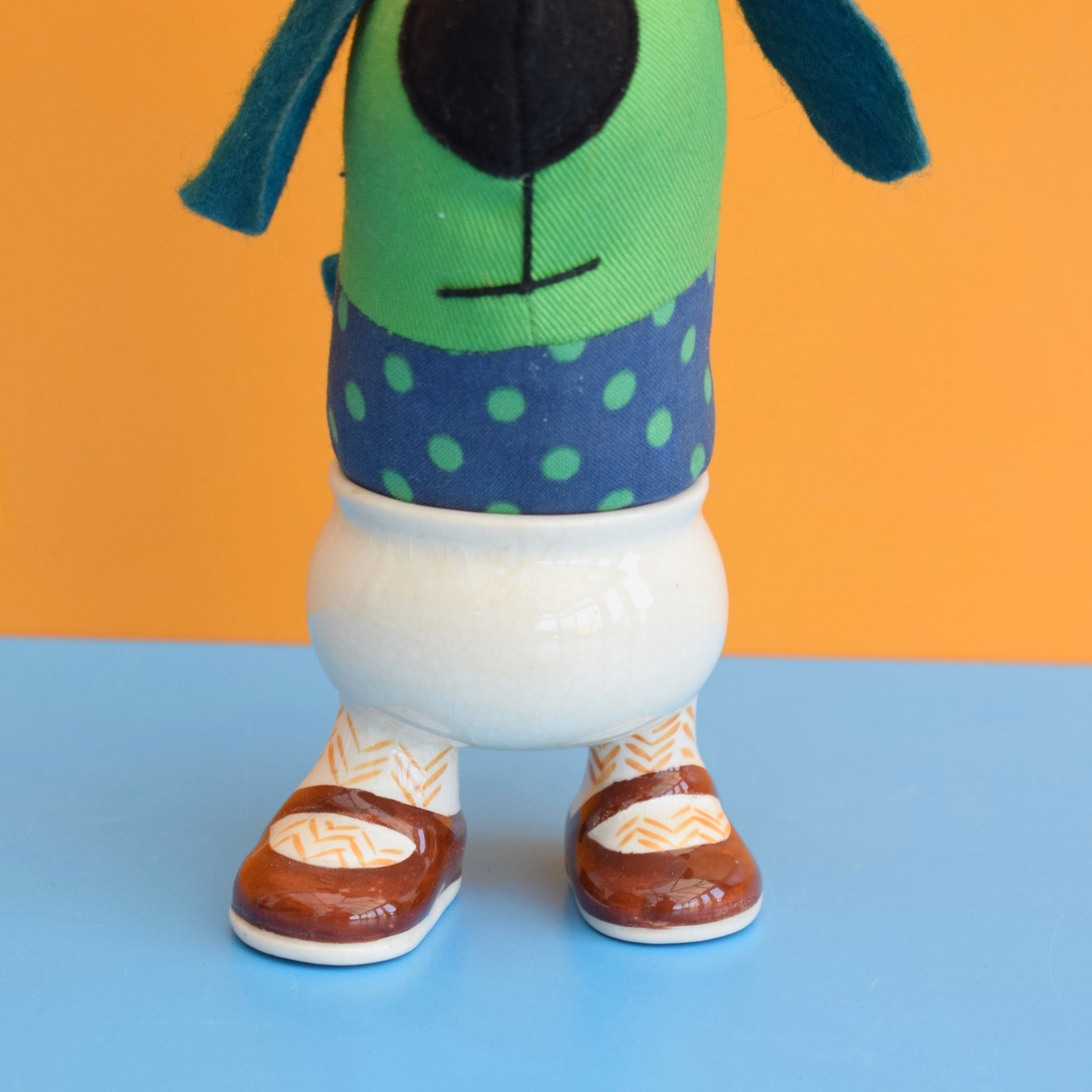 Vintage 1970s Carlton Ware Walking Egg Cup — a playful piece of retro kitchen history from Carlton Ware's famed walking ware range. The egg cup features two tiny feet protruding from the base, clad in brown shoes and herringbone socks, turning a simple breakfast into a smile-inducing moment.