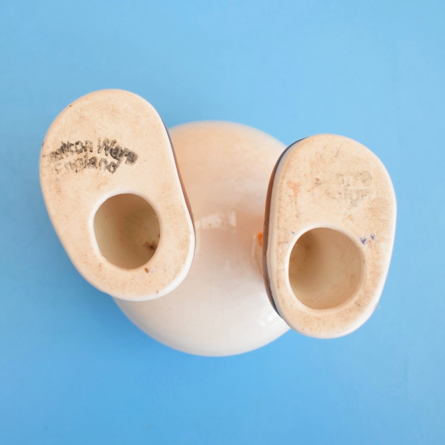 This is a 100% original vintage piece from the 1970s. The distinctive walking-ware design is a beloved hallmark of Carlton Ware, and this egg cup carries the same cheeky personality. Expect some glaze crazing and a touch of wear to the doggy ears—conditions perfectly in keeping with its vintage character.