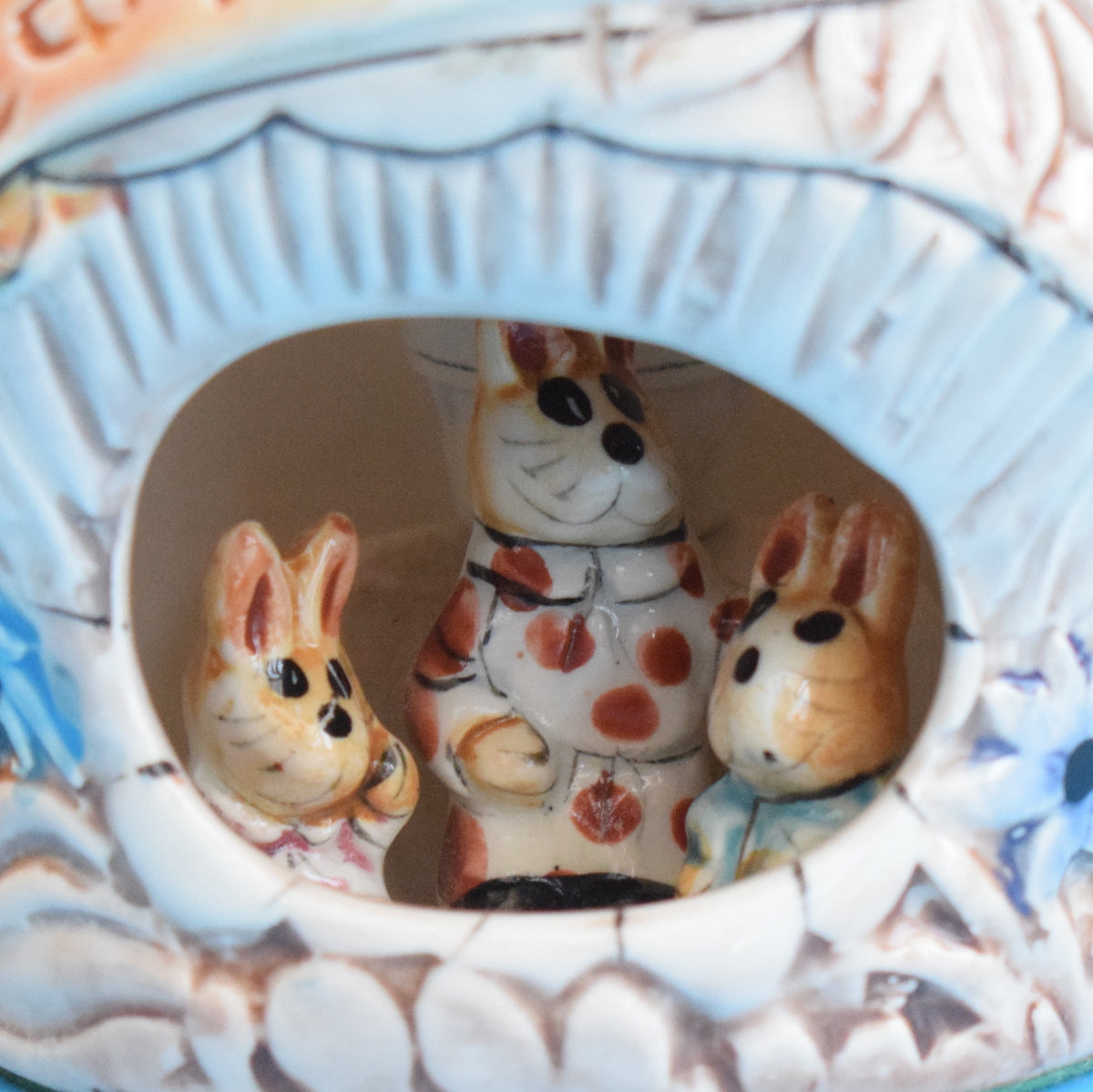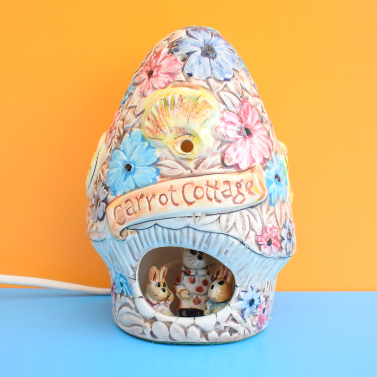 Vintage 1970s Ceramic Night Lamp - Carrot Cottage- Bunnies