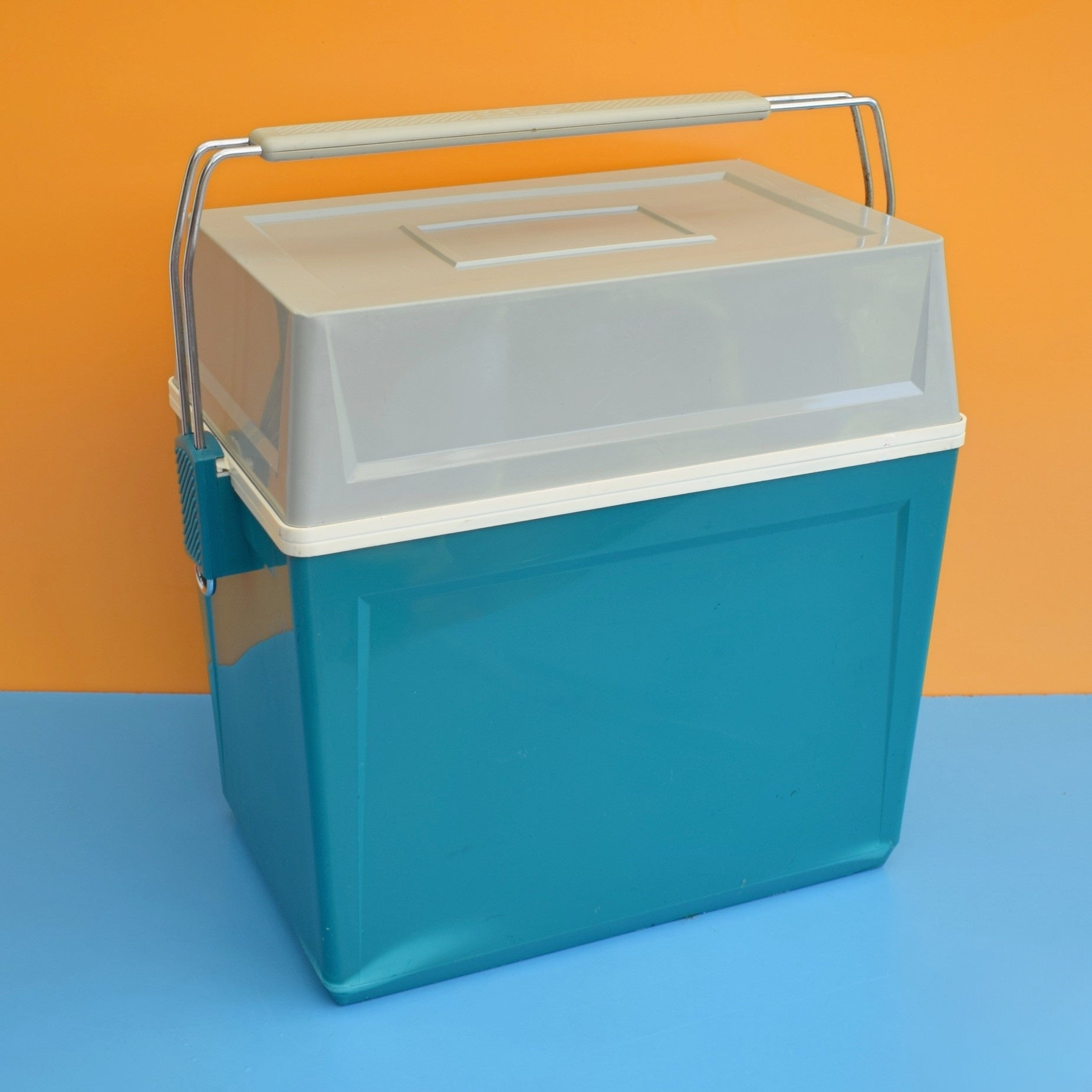 Hard plastic, with a thermal lining. Lovely shade of vibrant teal with grey
