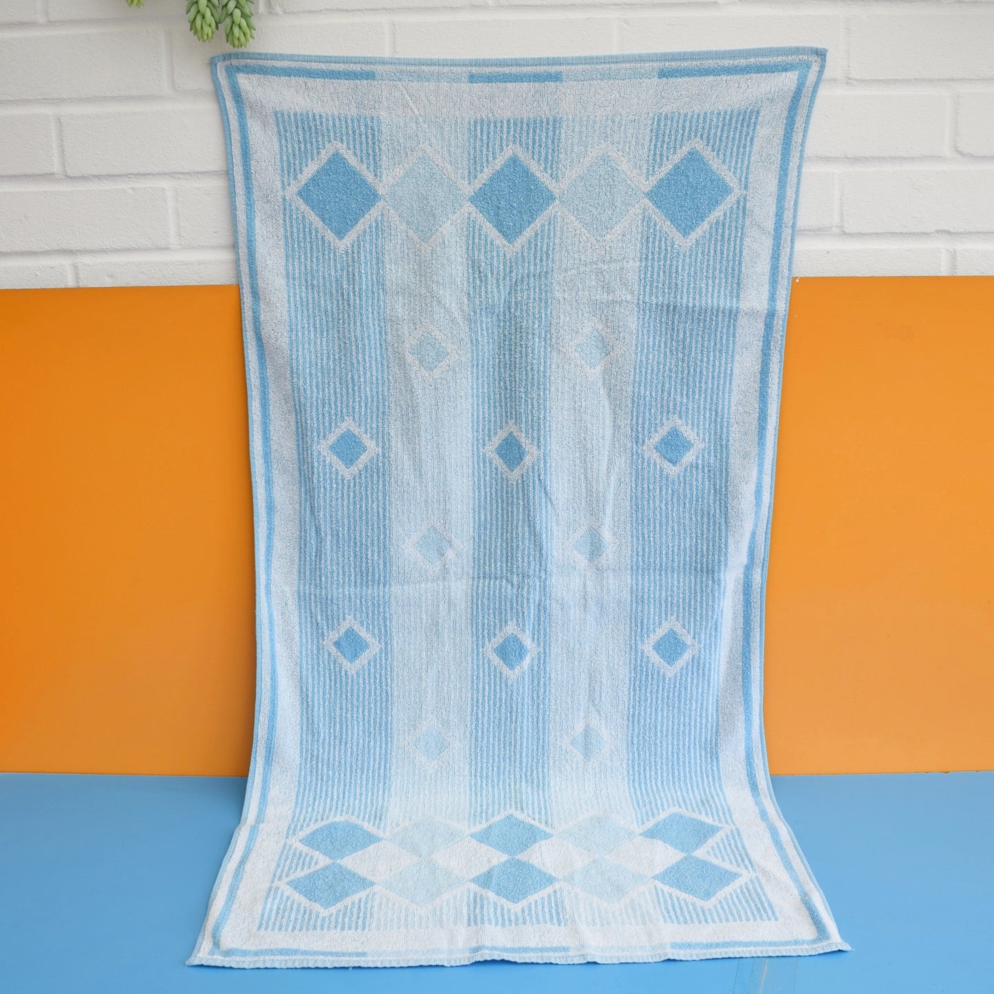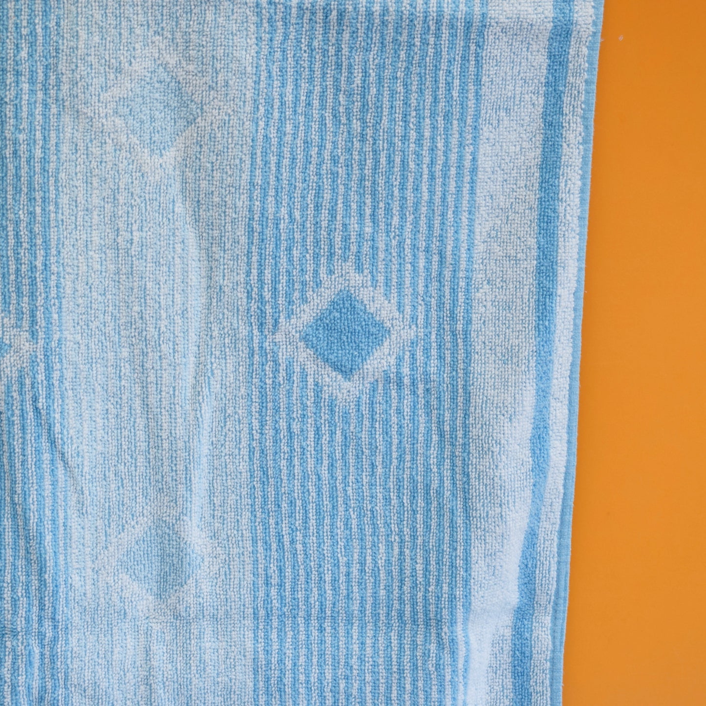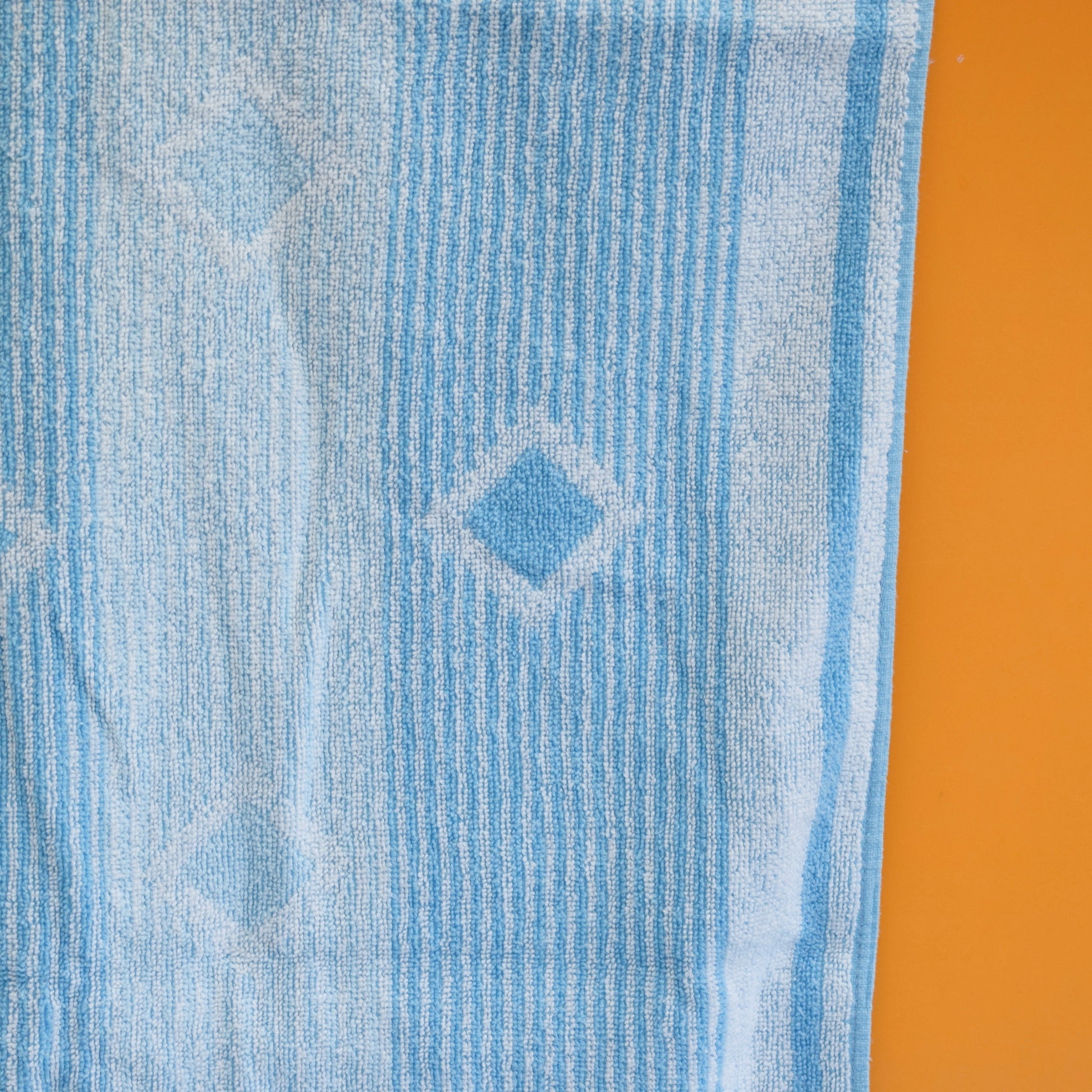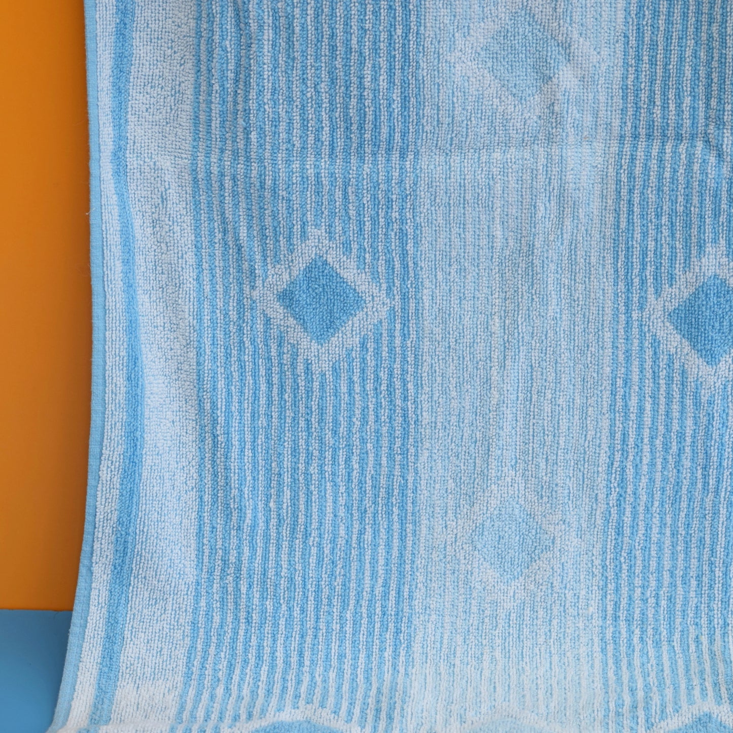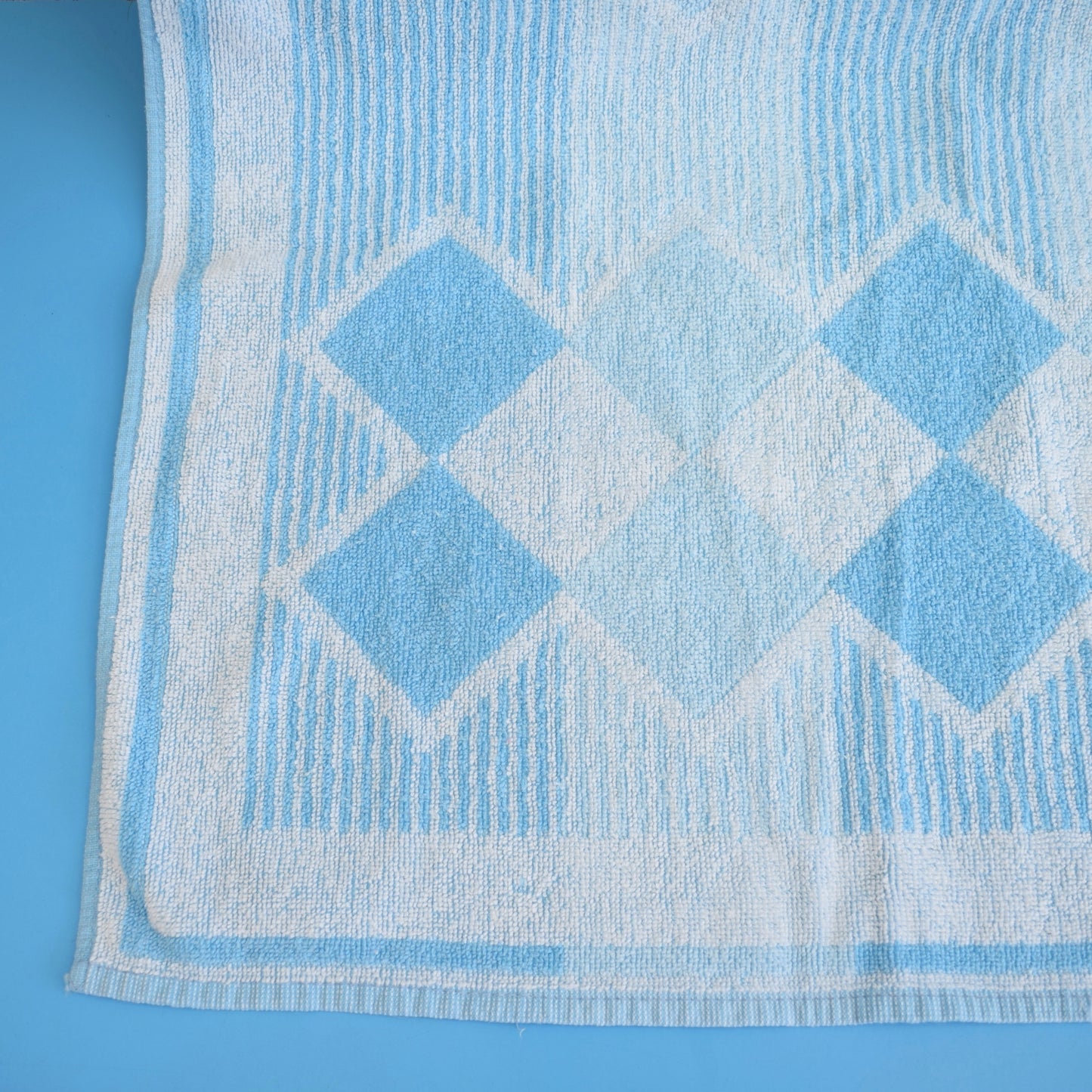 Vintage 1970s Cotton Bath Towel - Blue Diamonds