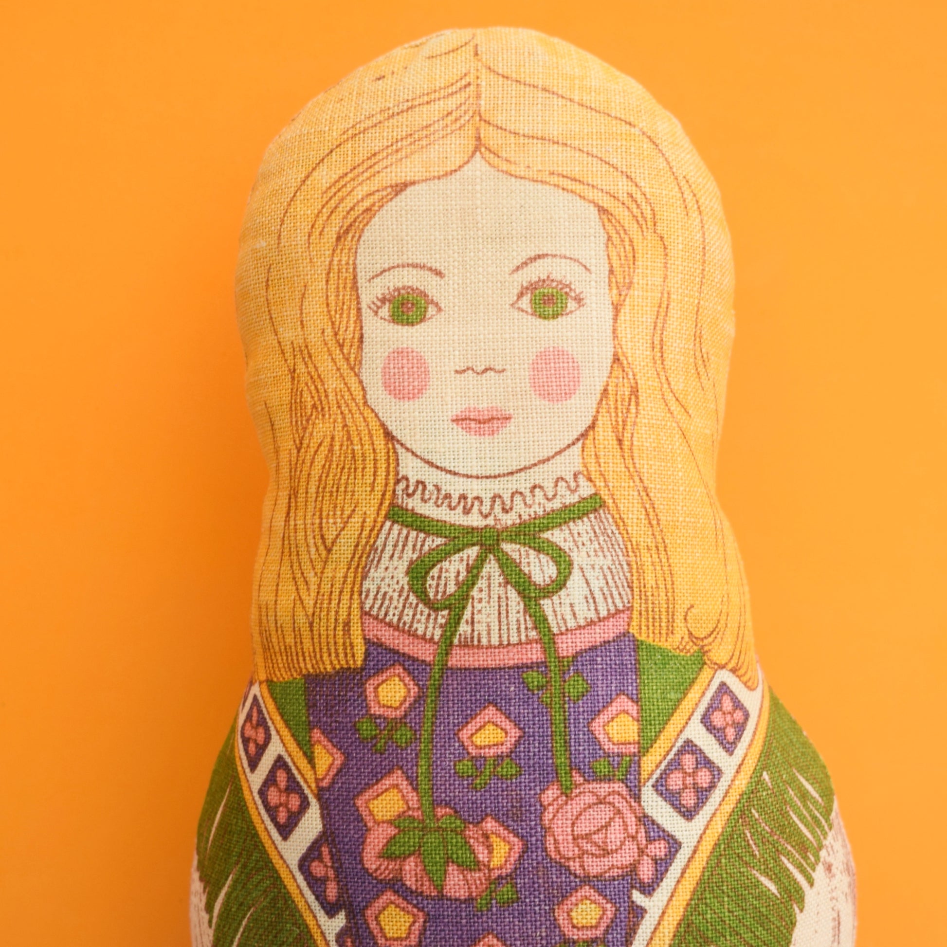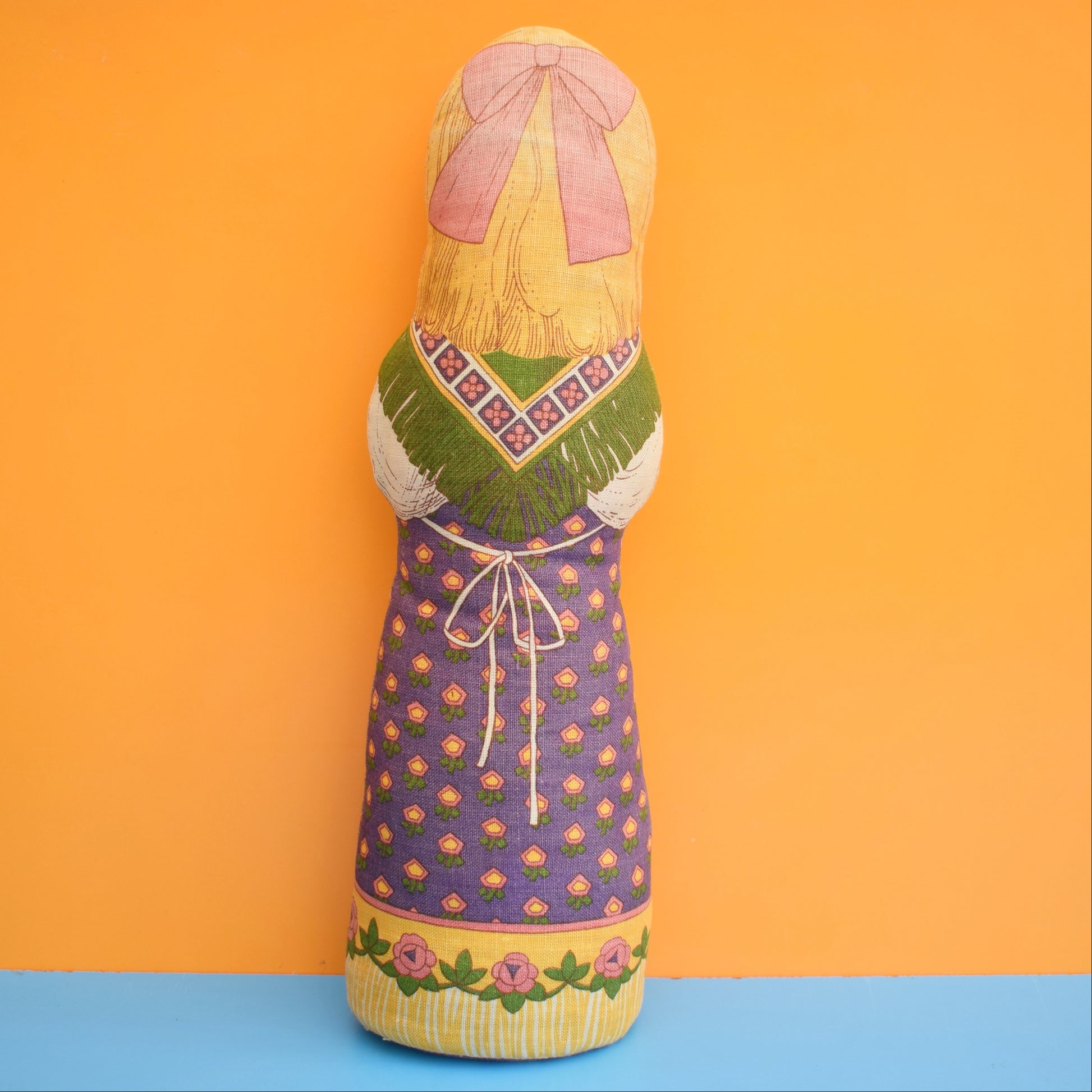 A 1970s doorstop made from a kit produced in the form of a tea towel for the national trust, designed by Pat Albeck