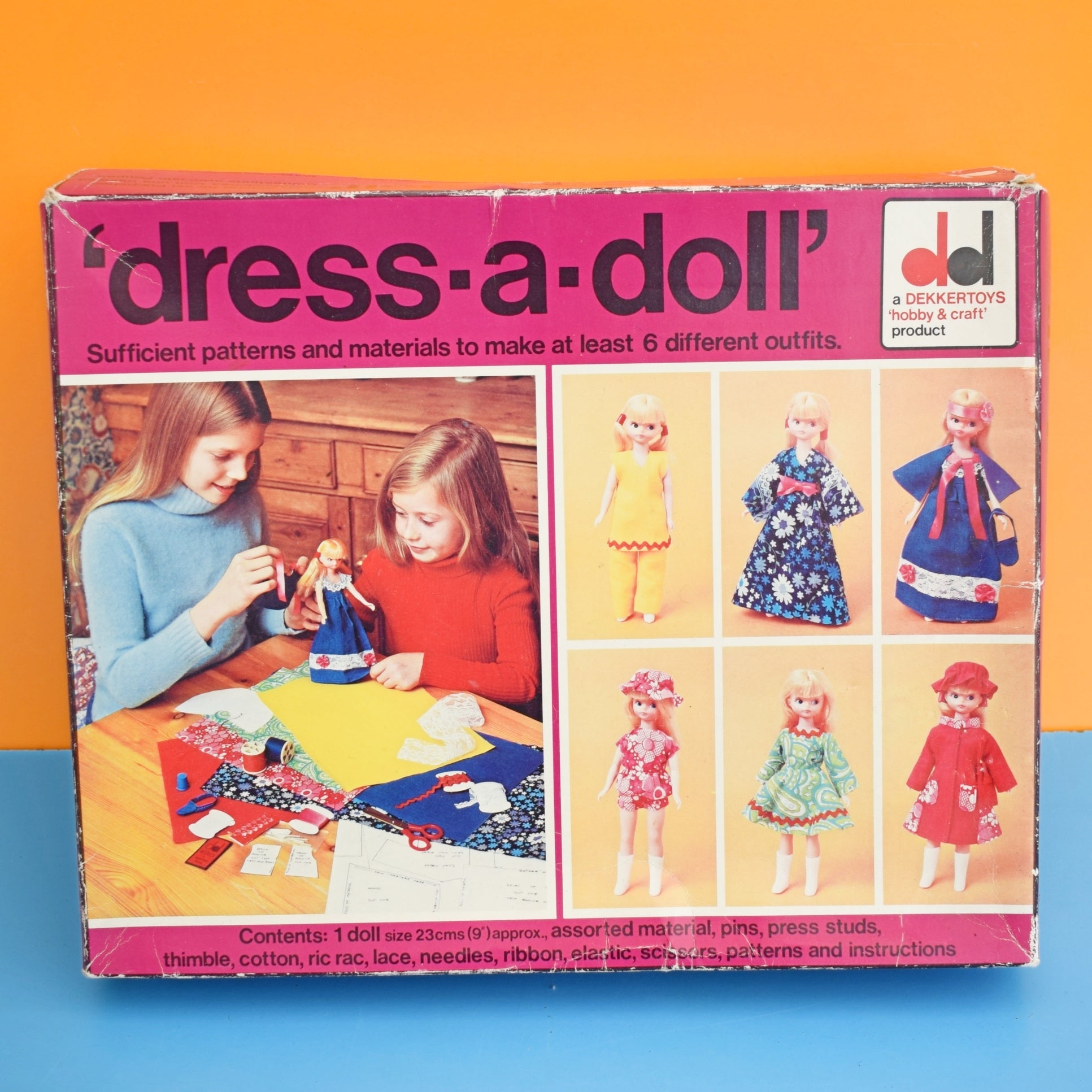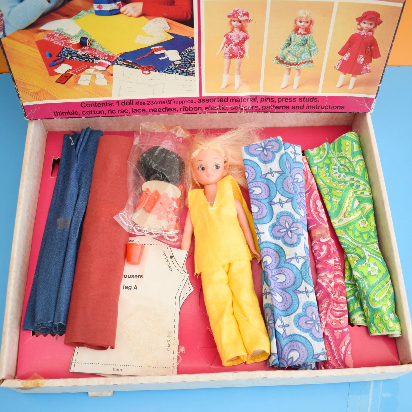 The doll is a similar scale to a Sindy or Barbie doll. Pattern for the top and trousers included, others missing.