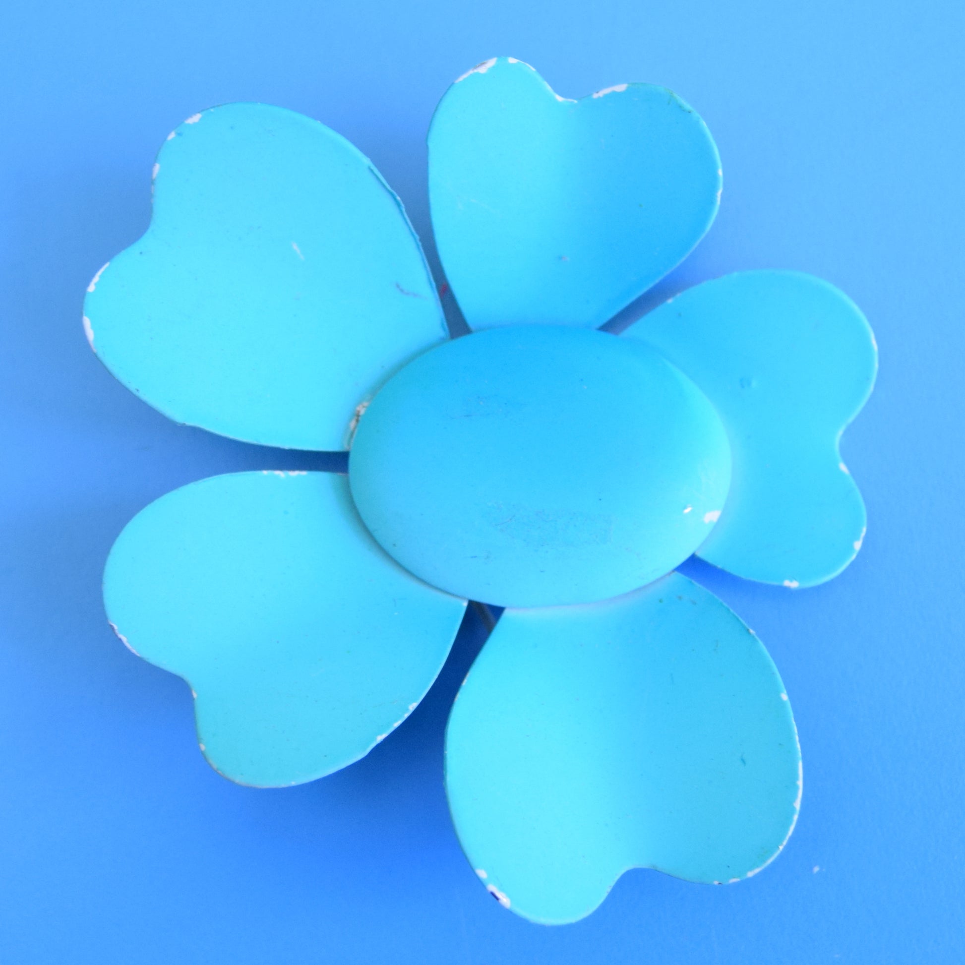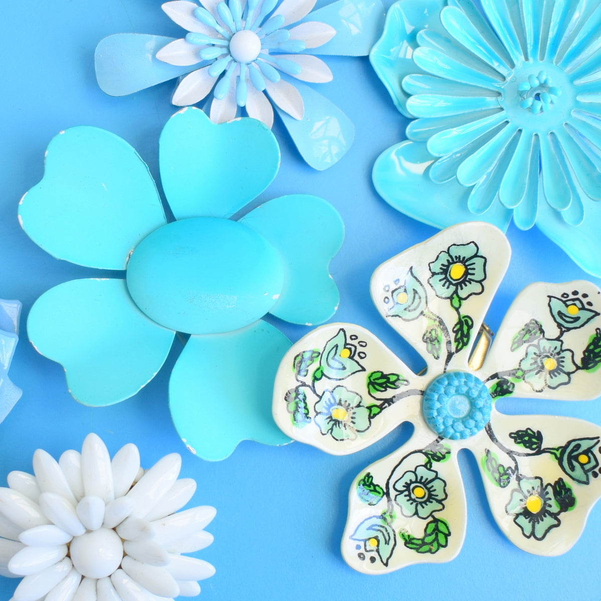 Vintage 1970s Enamel Brooch Pins - Flower Designs - Blue Mixed