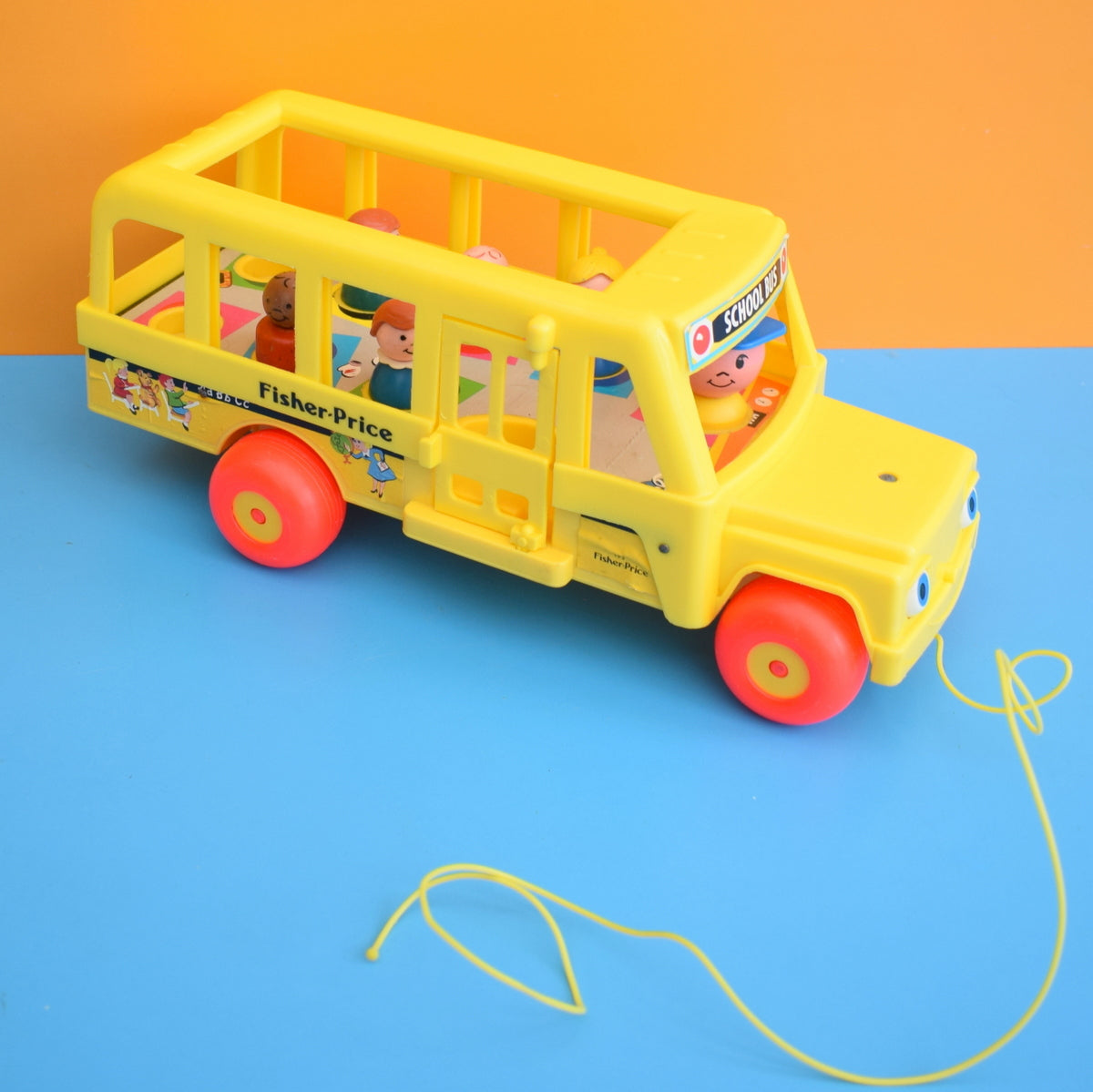 Vintage 1970s Fisher Price Big Yellow School Bus & People