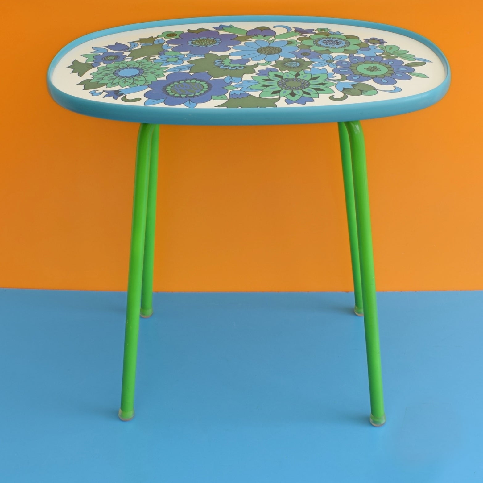 Vintage 1970s Flower Power M&S Table - Blue