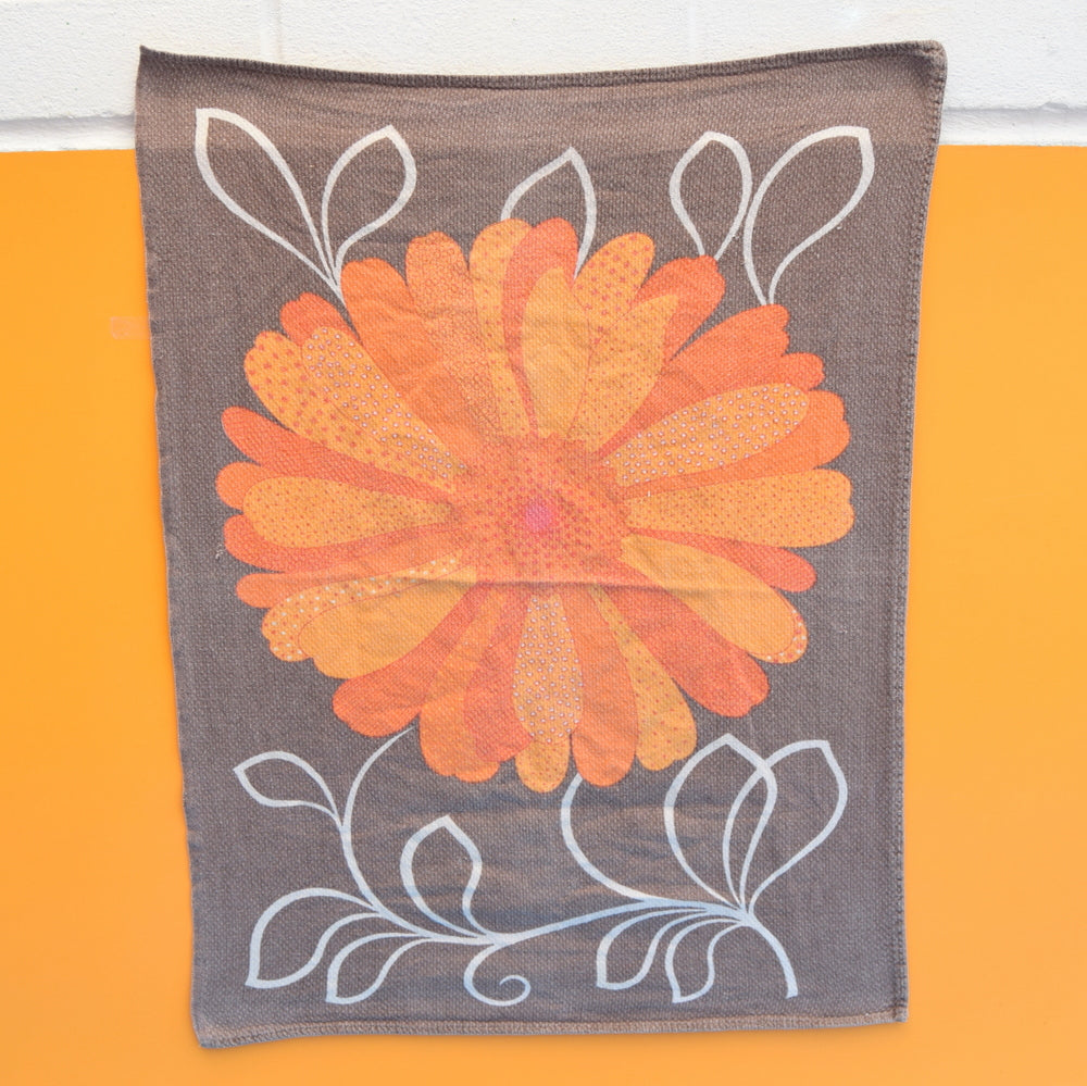 Vintage 1970s Flower Power Tea Towel - Orange & Brown