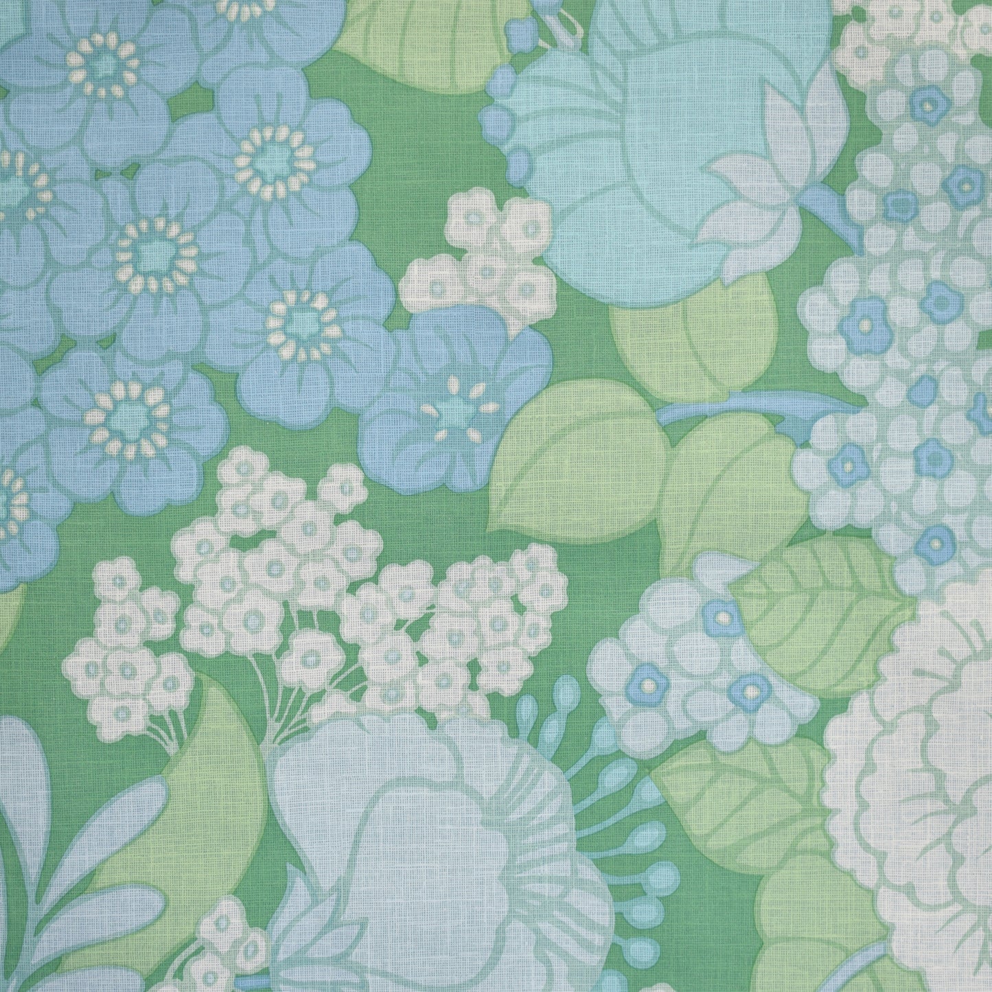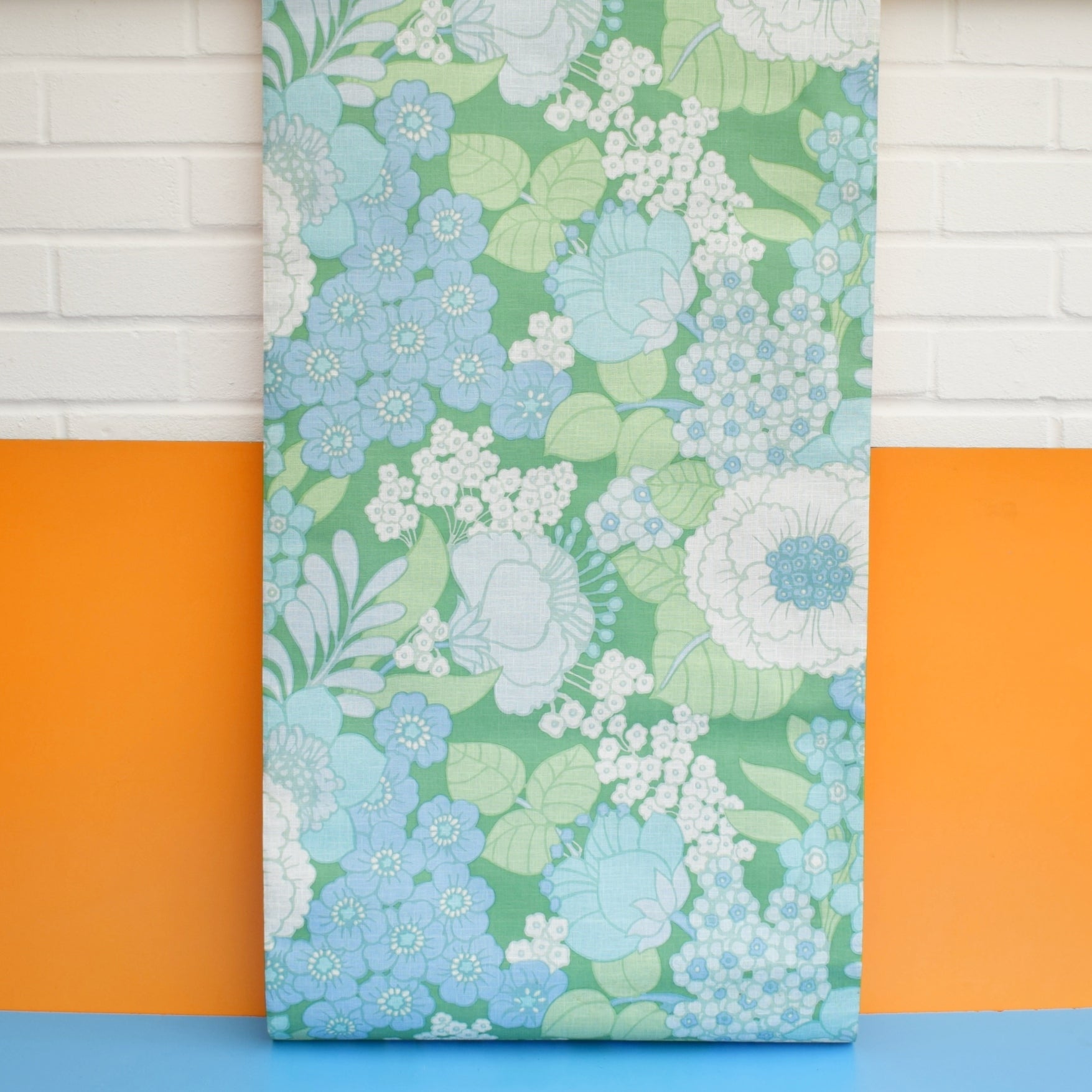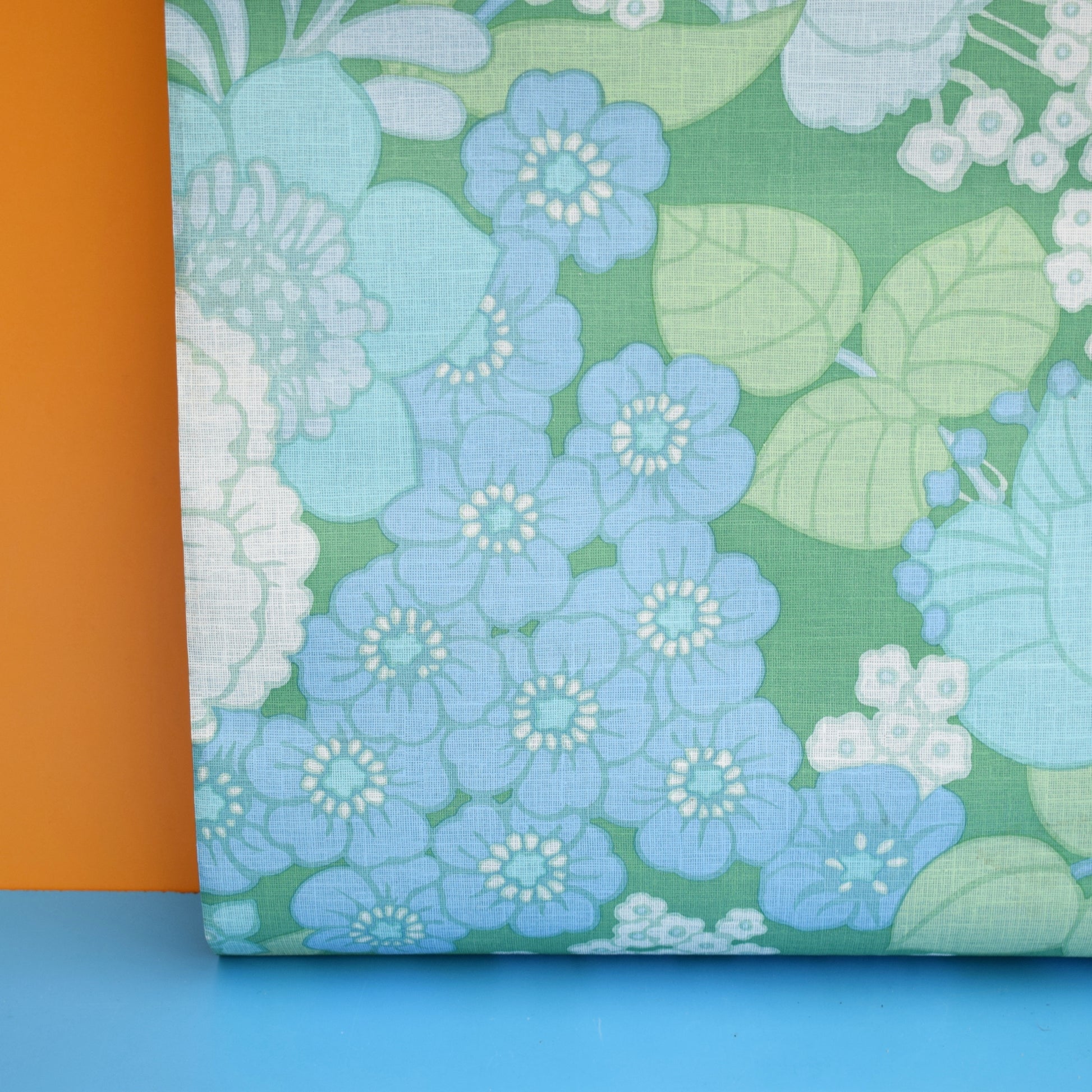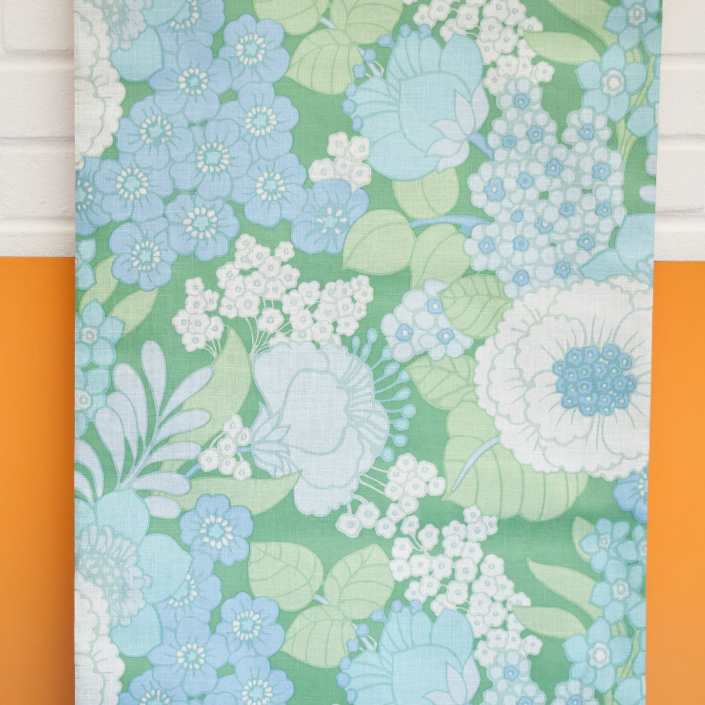 Vintage 1970s Flower Wallpaper - Blue & Green