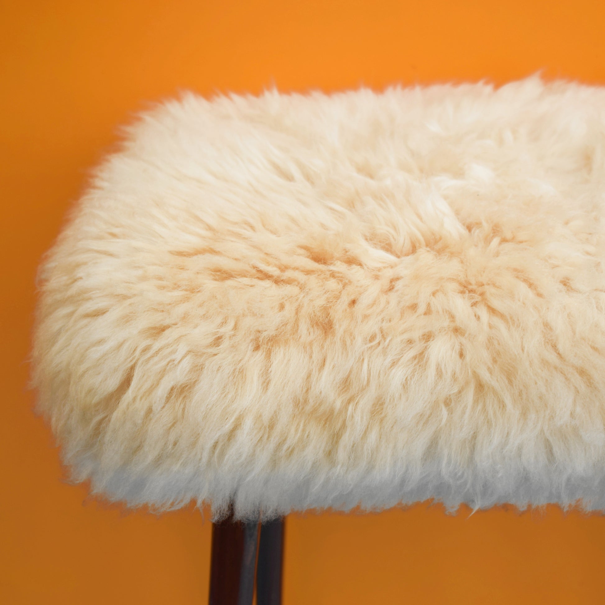 Vintage 1970s Fluffy Sheepskin Wool Stool - Cream .