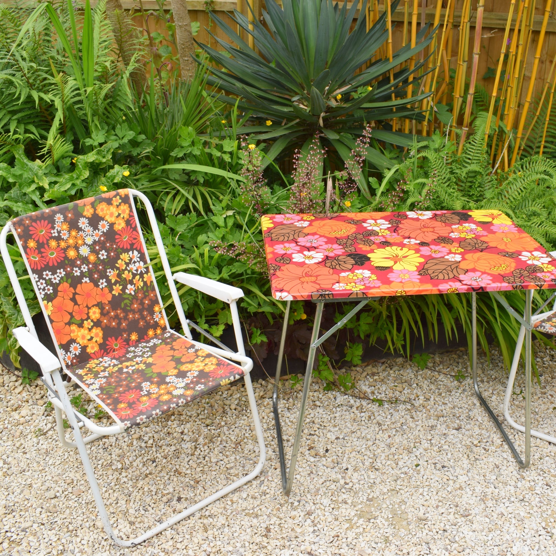 Vintage 1970s Folding Table & Chairs - Flower Power Designs