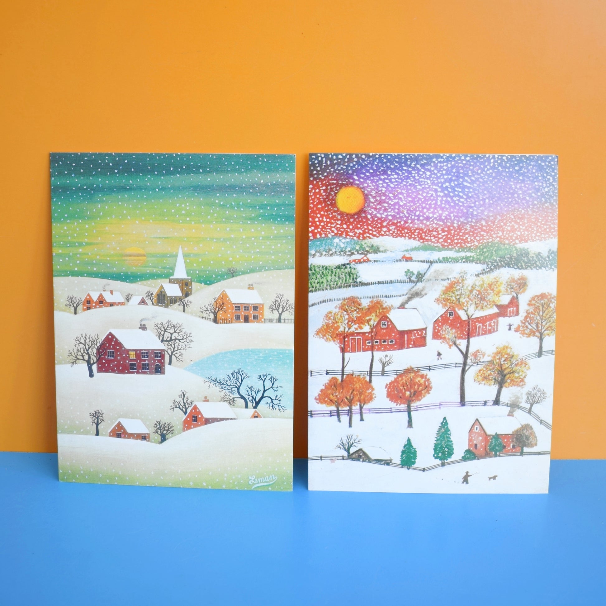 Vintage 1970s French Christmas Greeting Card - Snow Scenes - Martin Leman