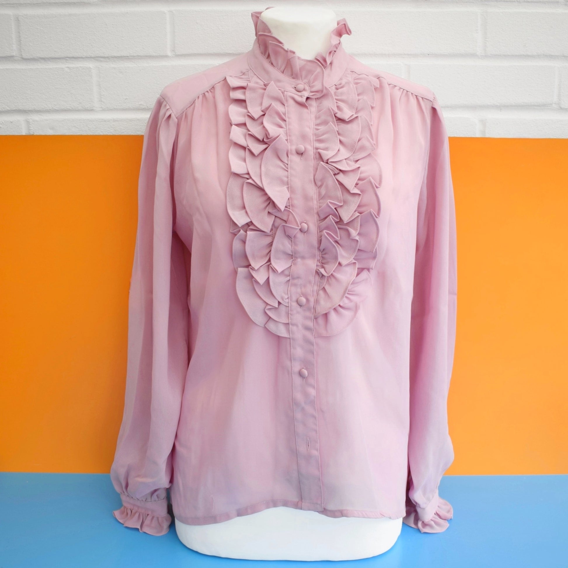 Soft, frilled and unmistakably 1970s—these vintage pastel shirts offer effortless retro charm for anyone seeking lightweight, easy-care pieces to build layered or classic period looks. Sized to wear loose, each shirt brings collectible mid-century detail and everyday practicality to your wardrobe.