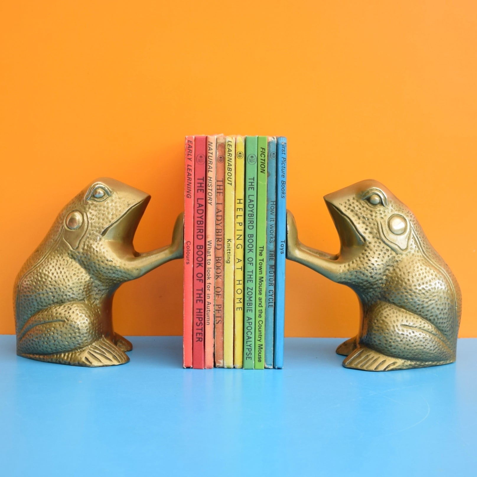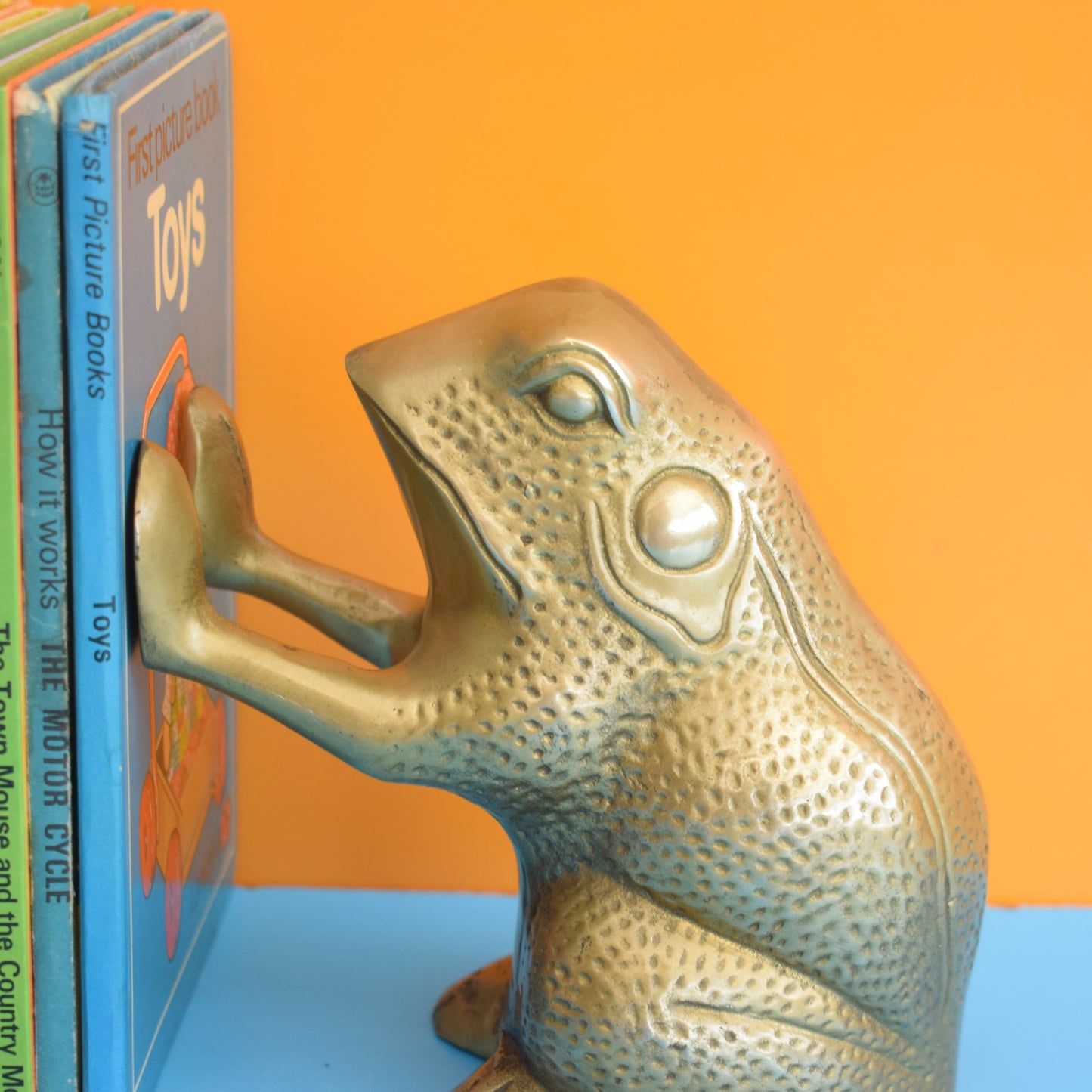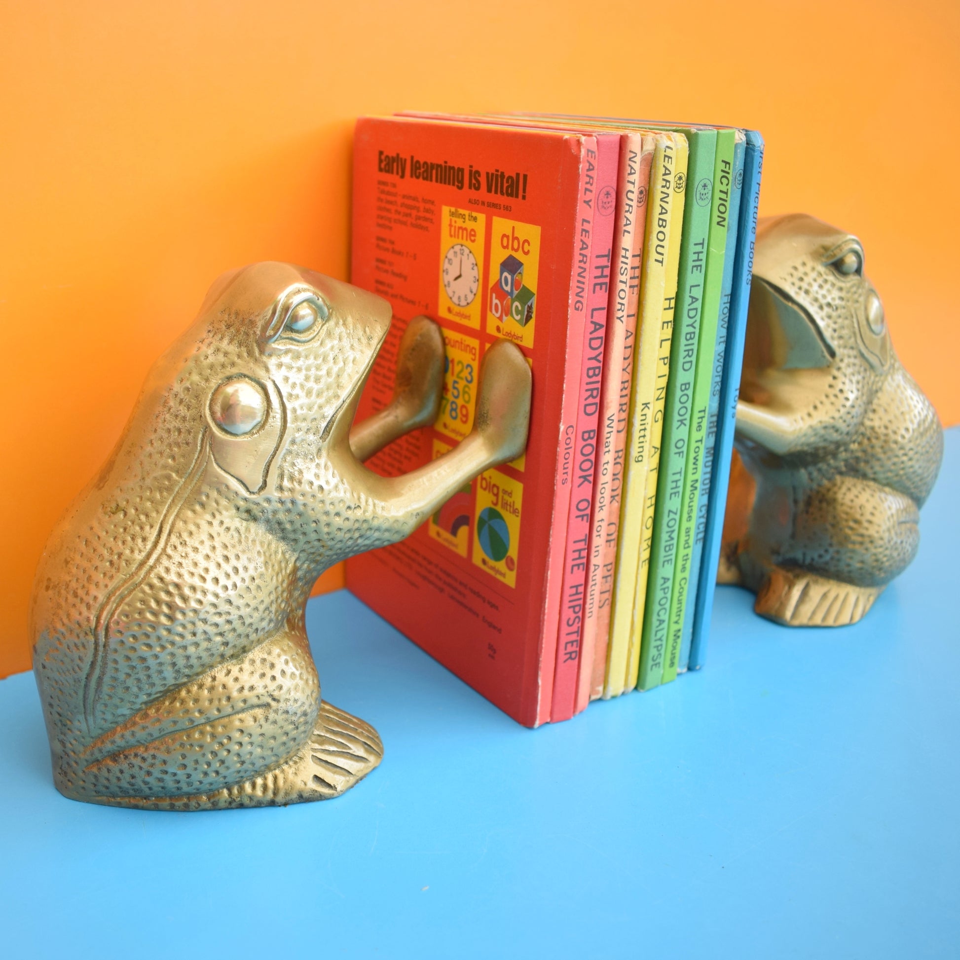 Vintage 1970s Frog / Toad Bookends- Brass