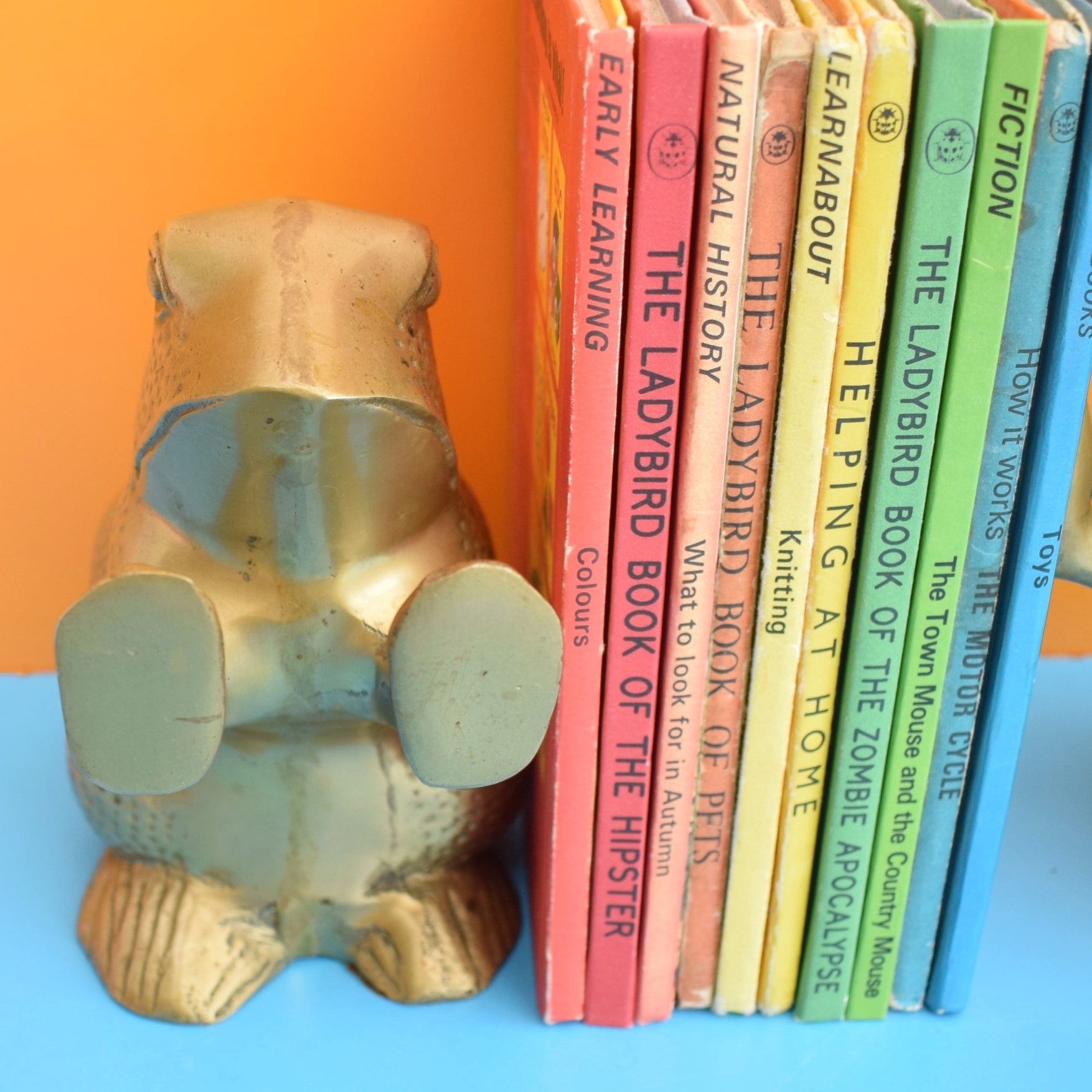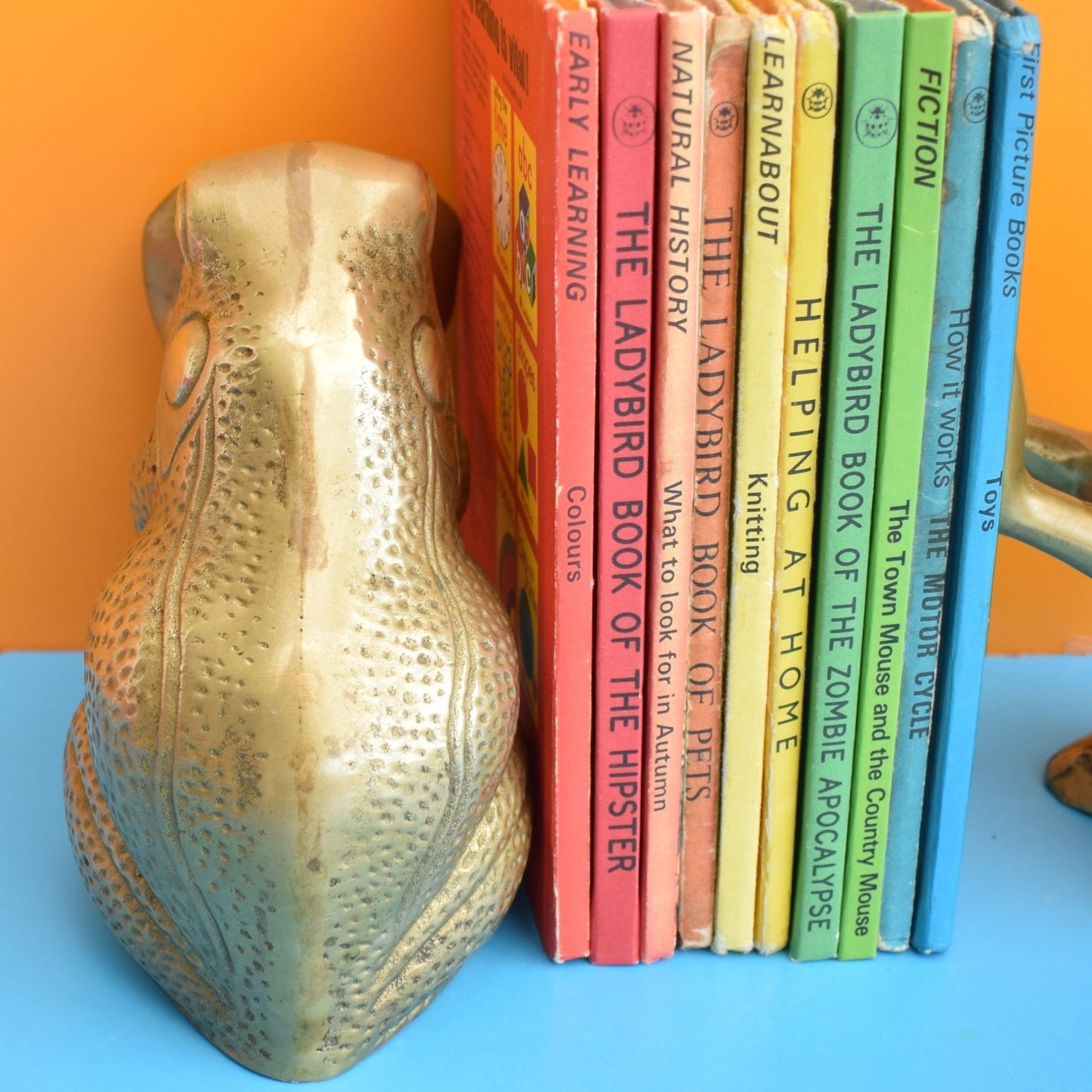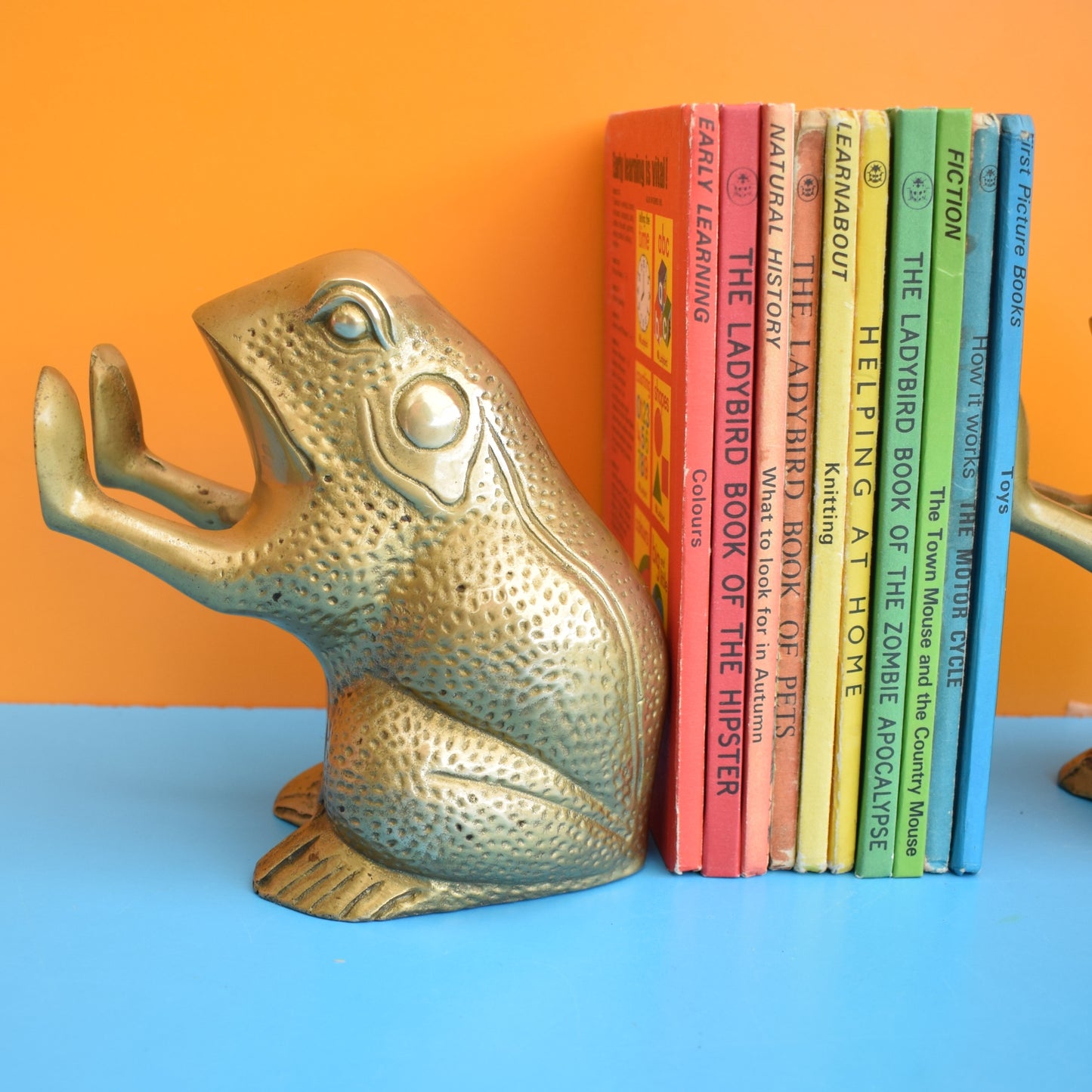 Vintage 1970s Frog / Toad Bookends- Brass