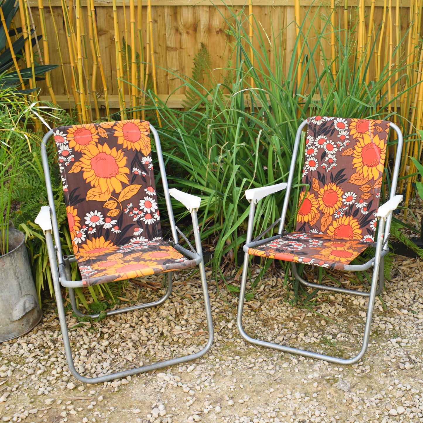 This gorgeous pair of folding garden chairs are genuine 1970s pieces.