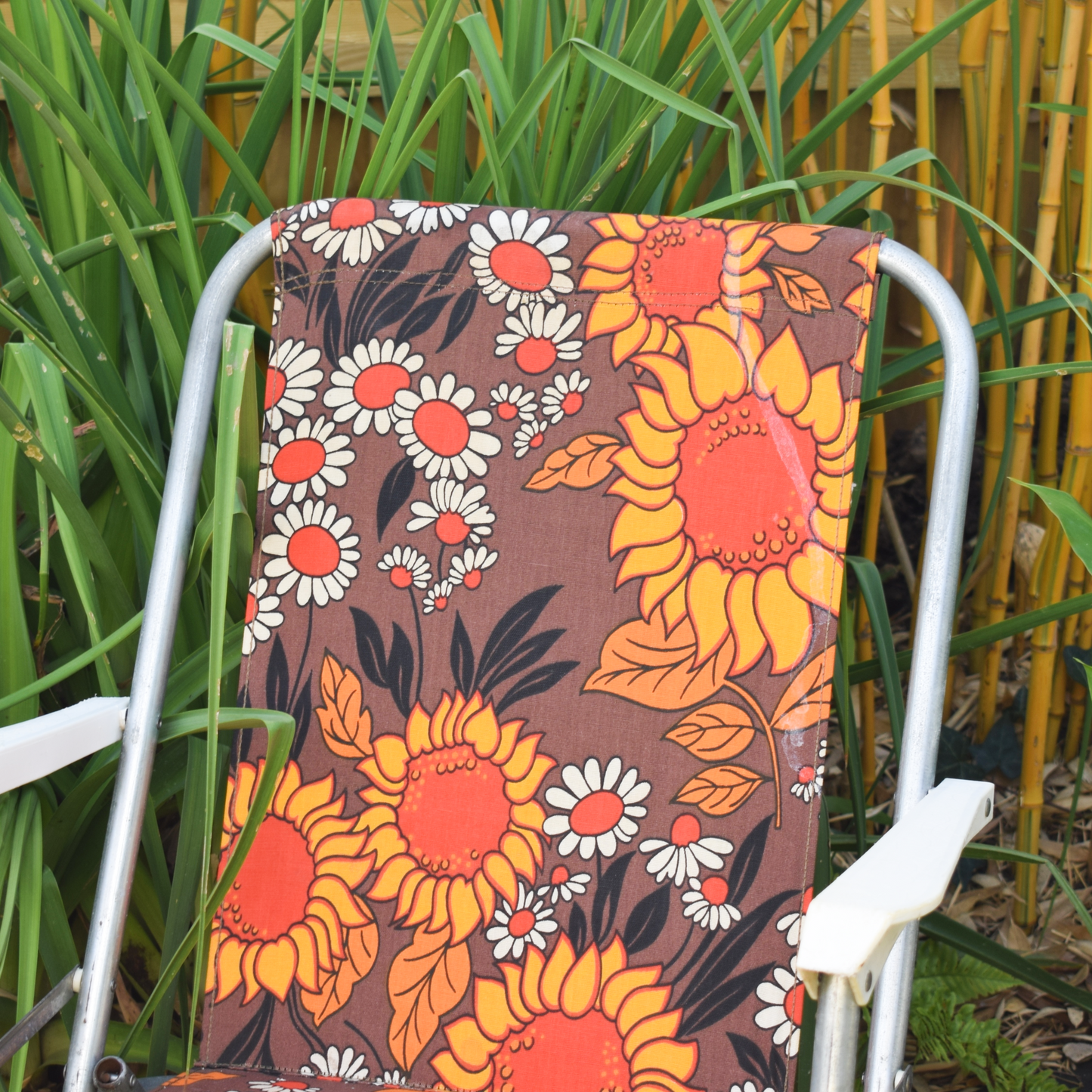 Vintage 1970s Garden Chairs - Orange & Brown Flower