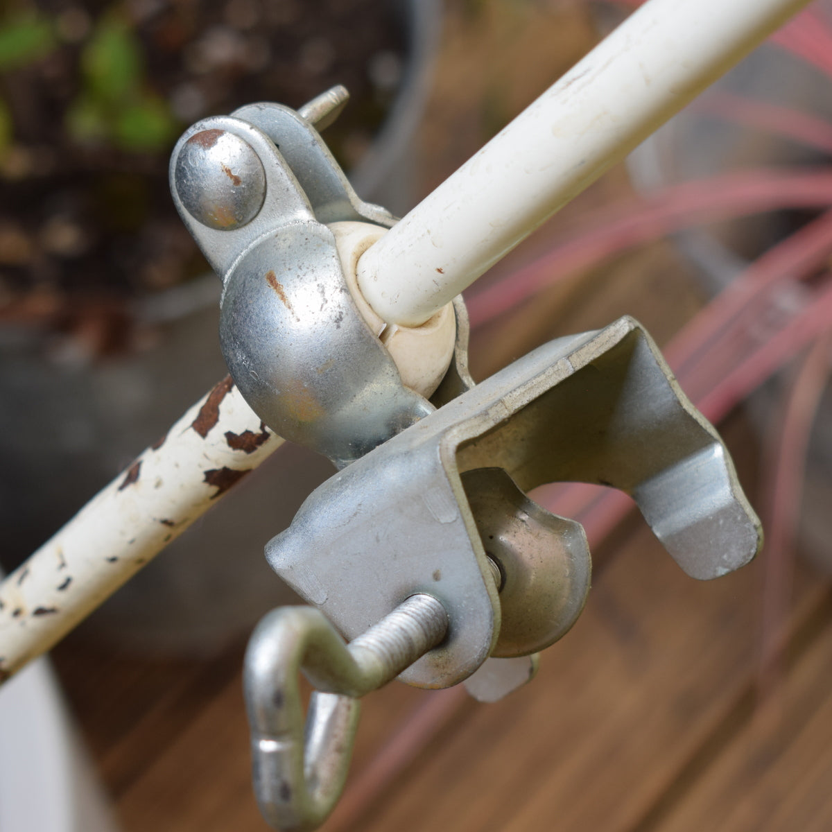 Unusual mechanism on the pole, with a swivel ball and clamp to a chair if required