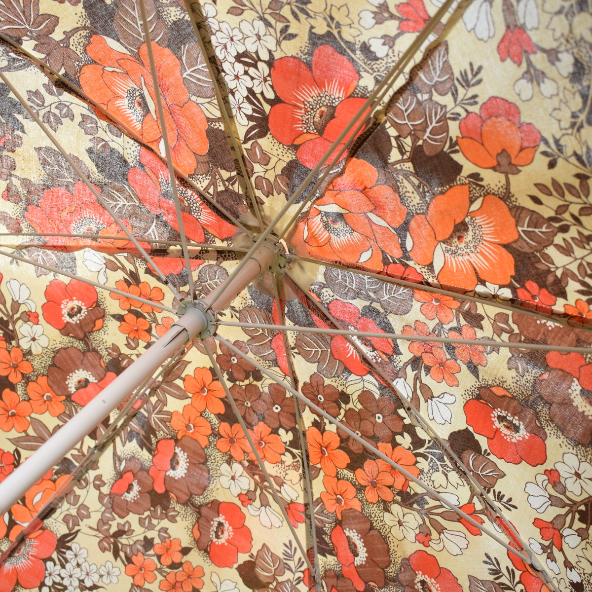 Vintage 1970s Garden Parasol - Orange Flower Power
