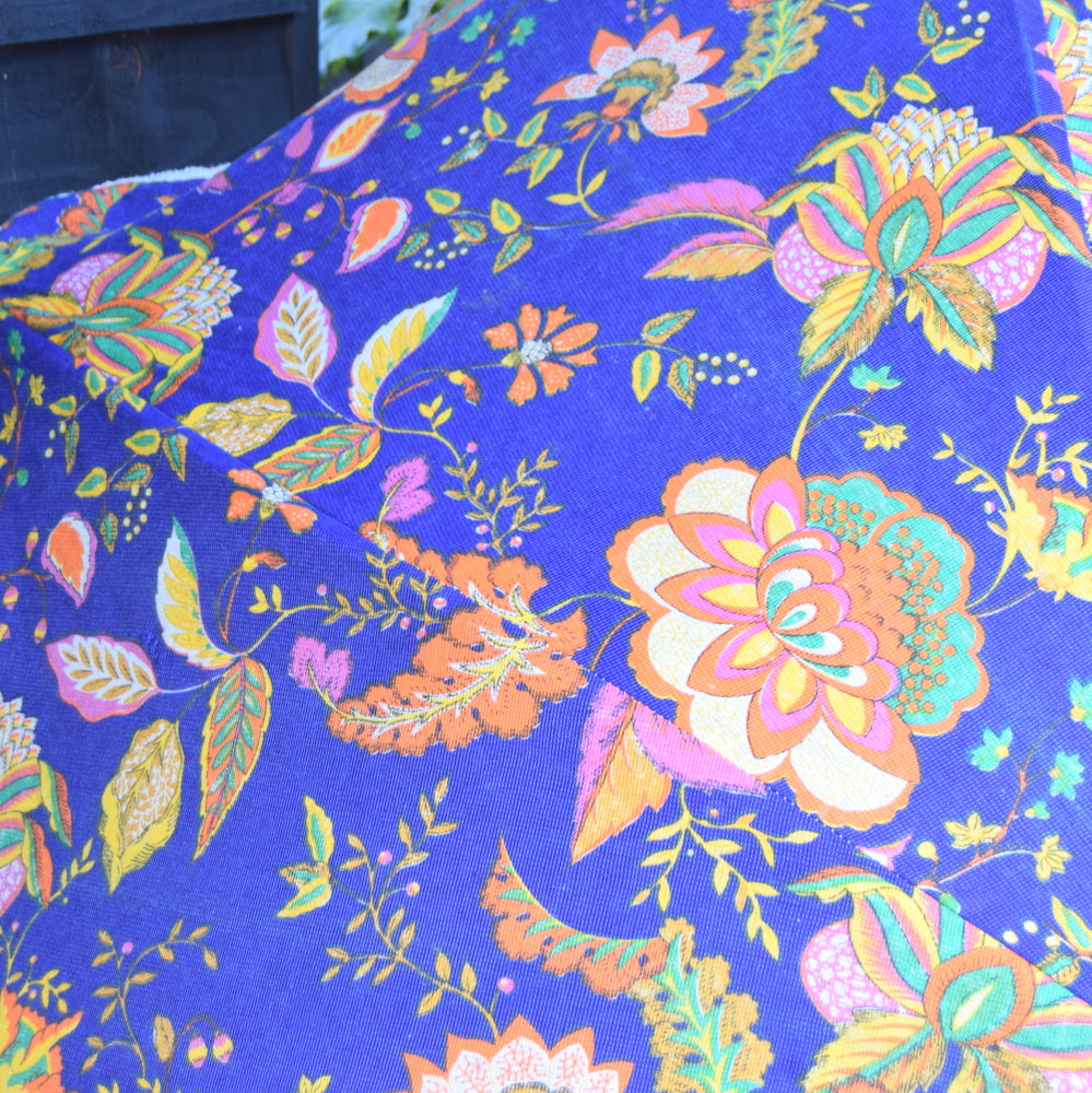 Vintage 1970s - Garden Parasol / Umbrella - Blue & Orange Flowers