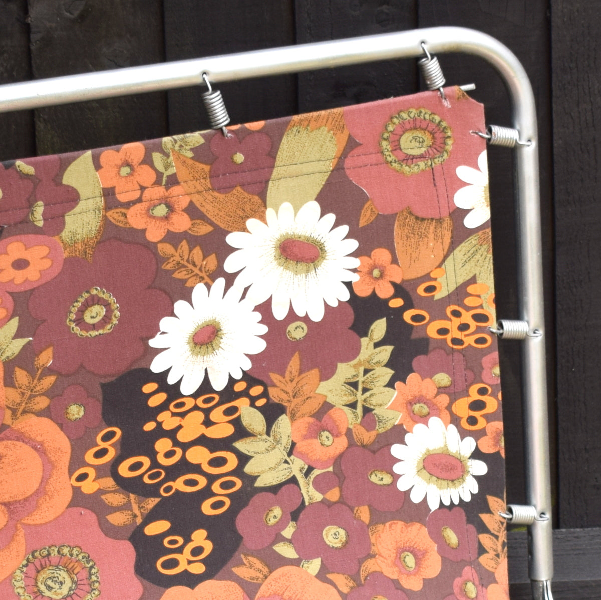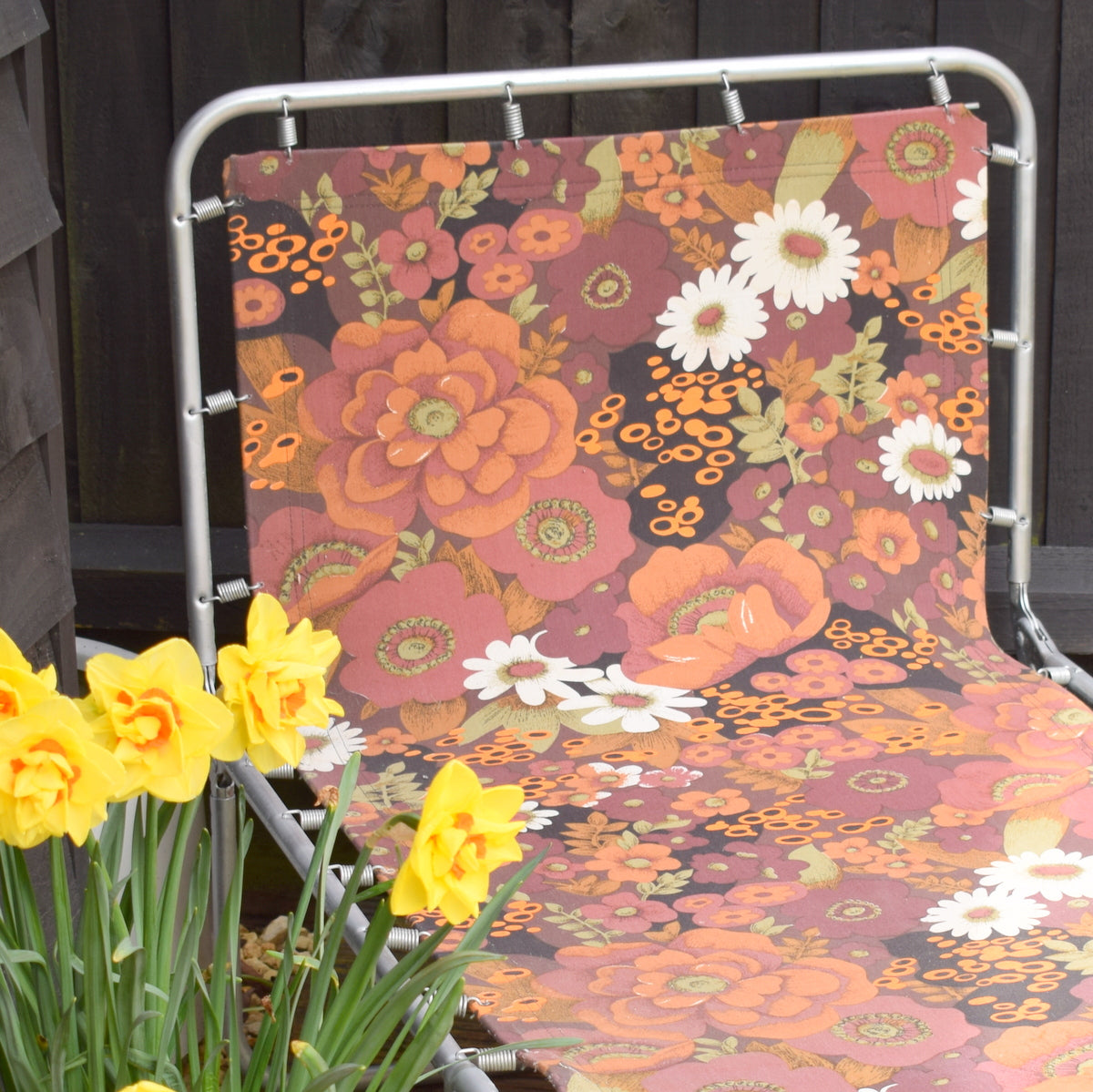 Vintage 1970s Garden Sun Lounger - Brown Flower Power
