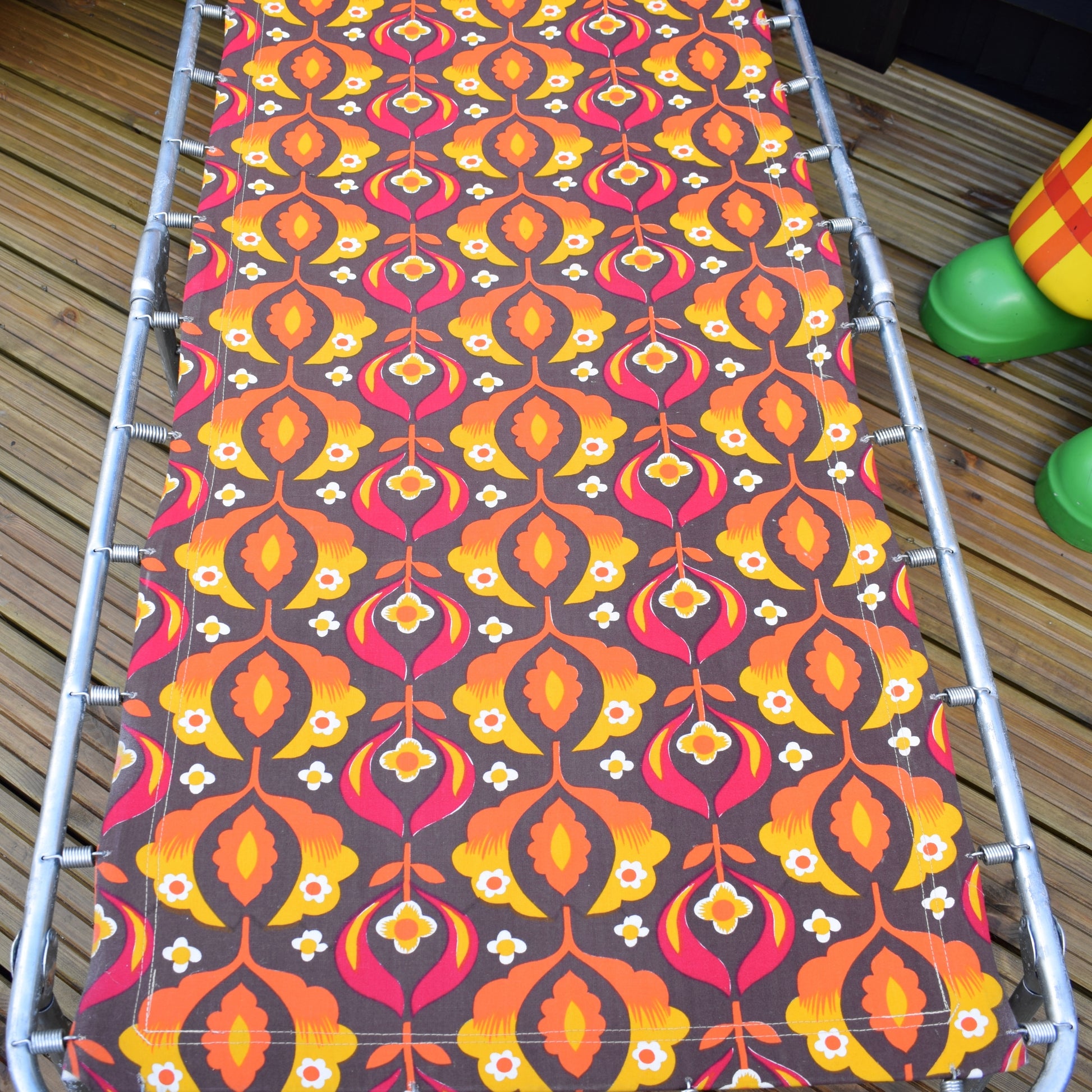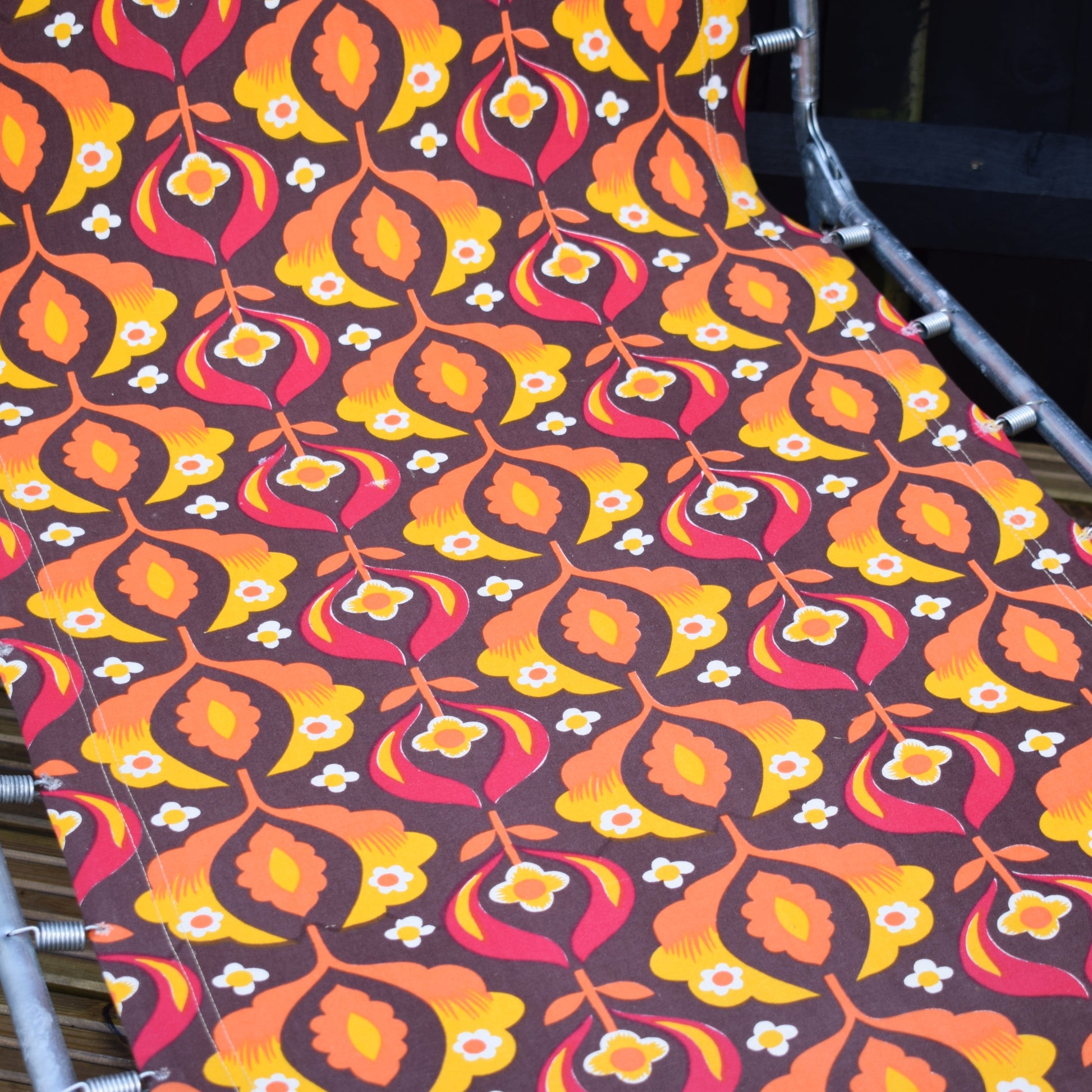 Vintage 1970s Garden Sun Lounger - Orange Psychedelic Flowers