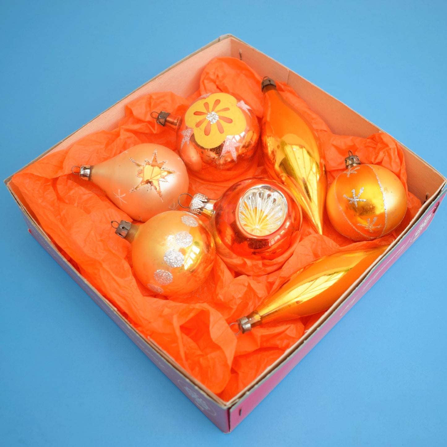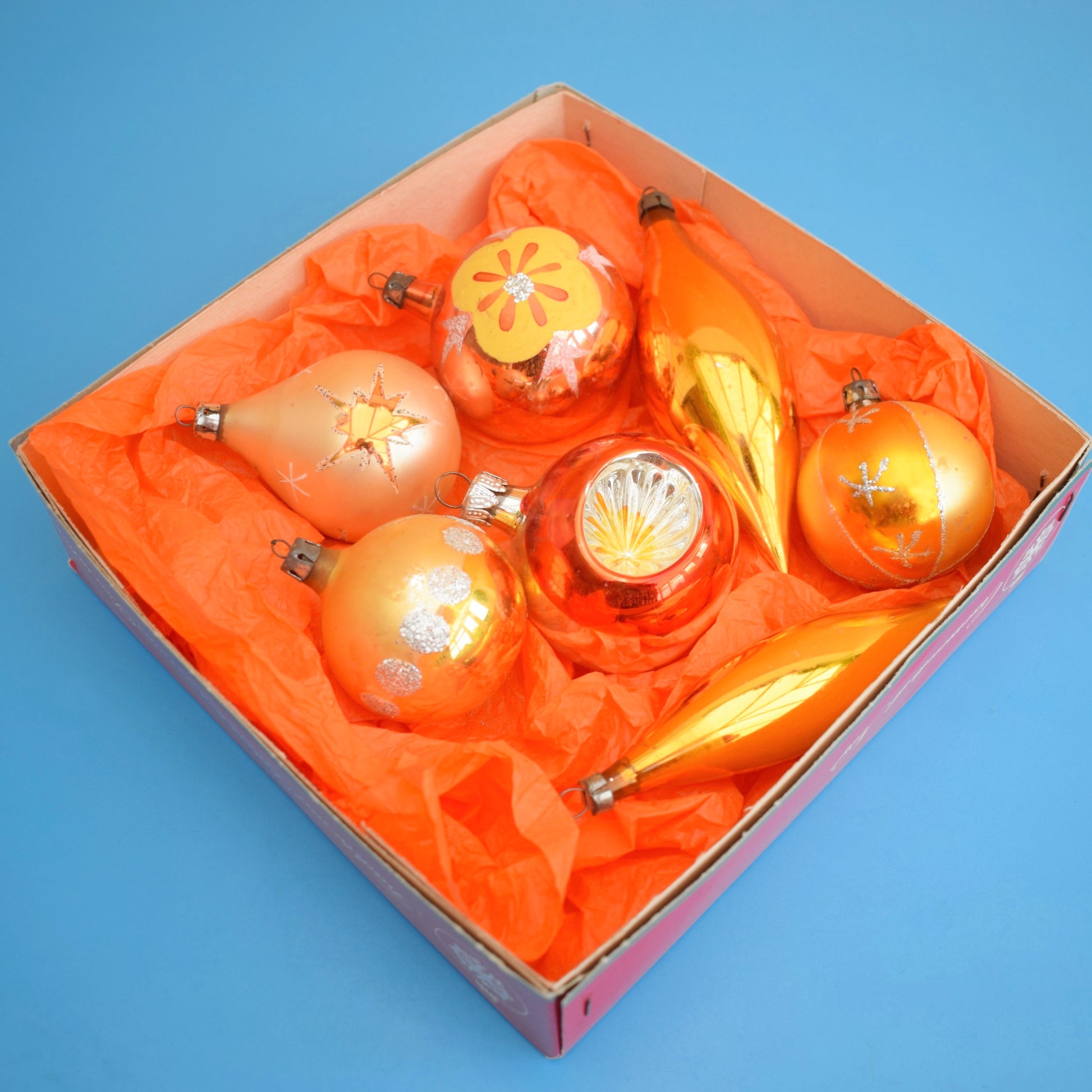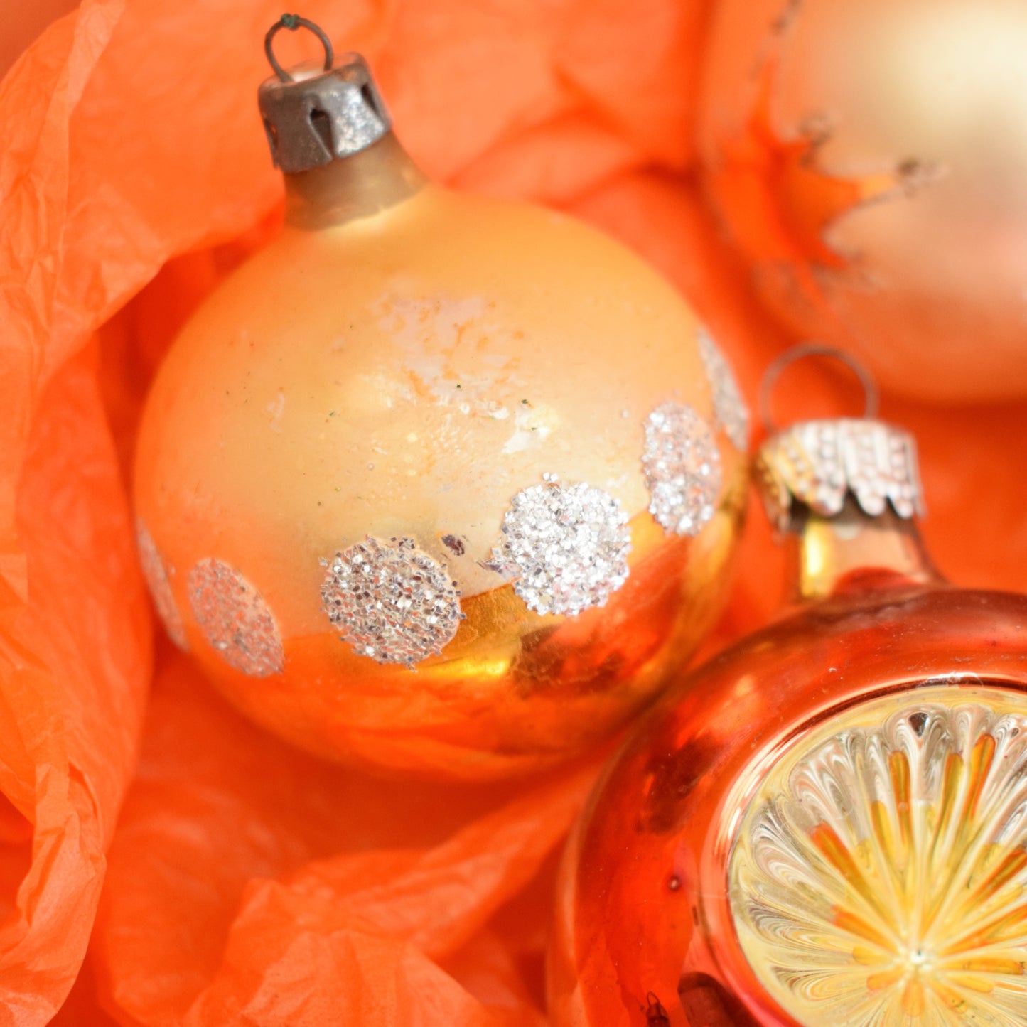 Vintage 1970s Glass Christmas Baubles - Orange / Gold