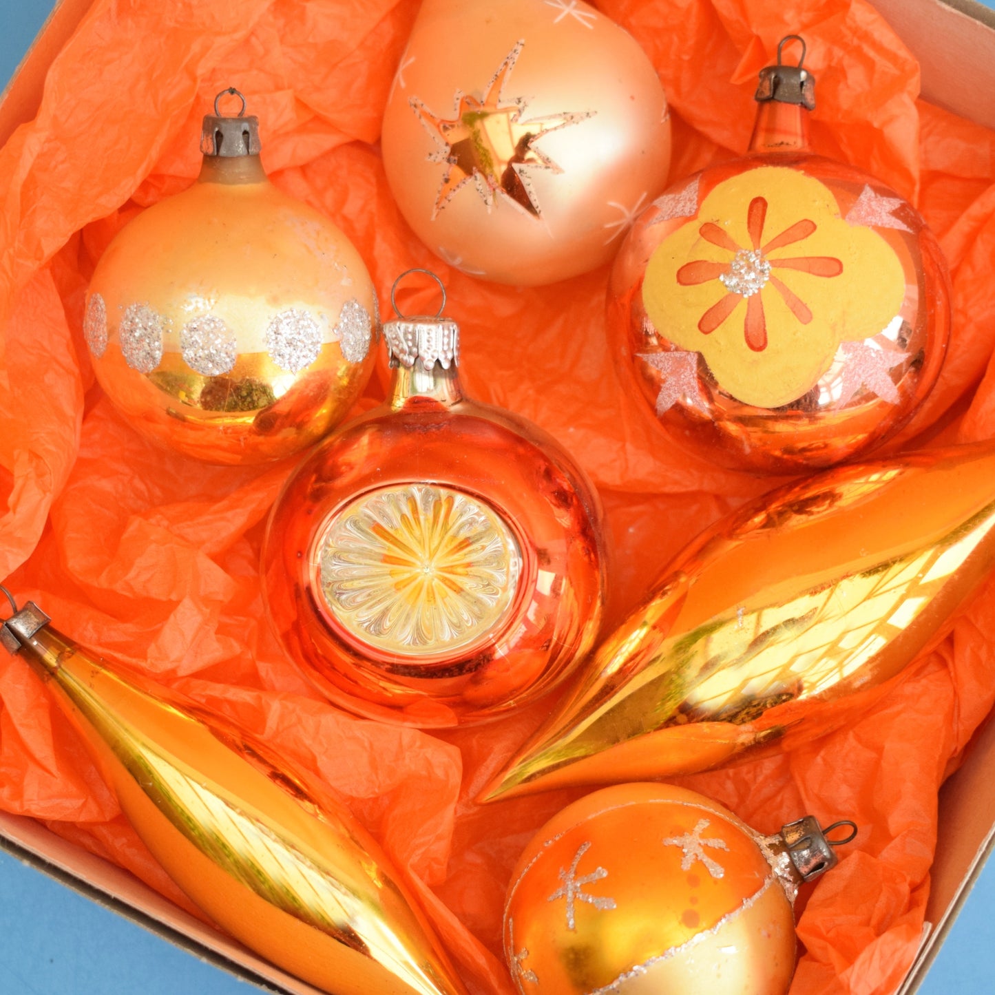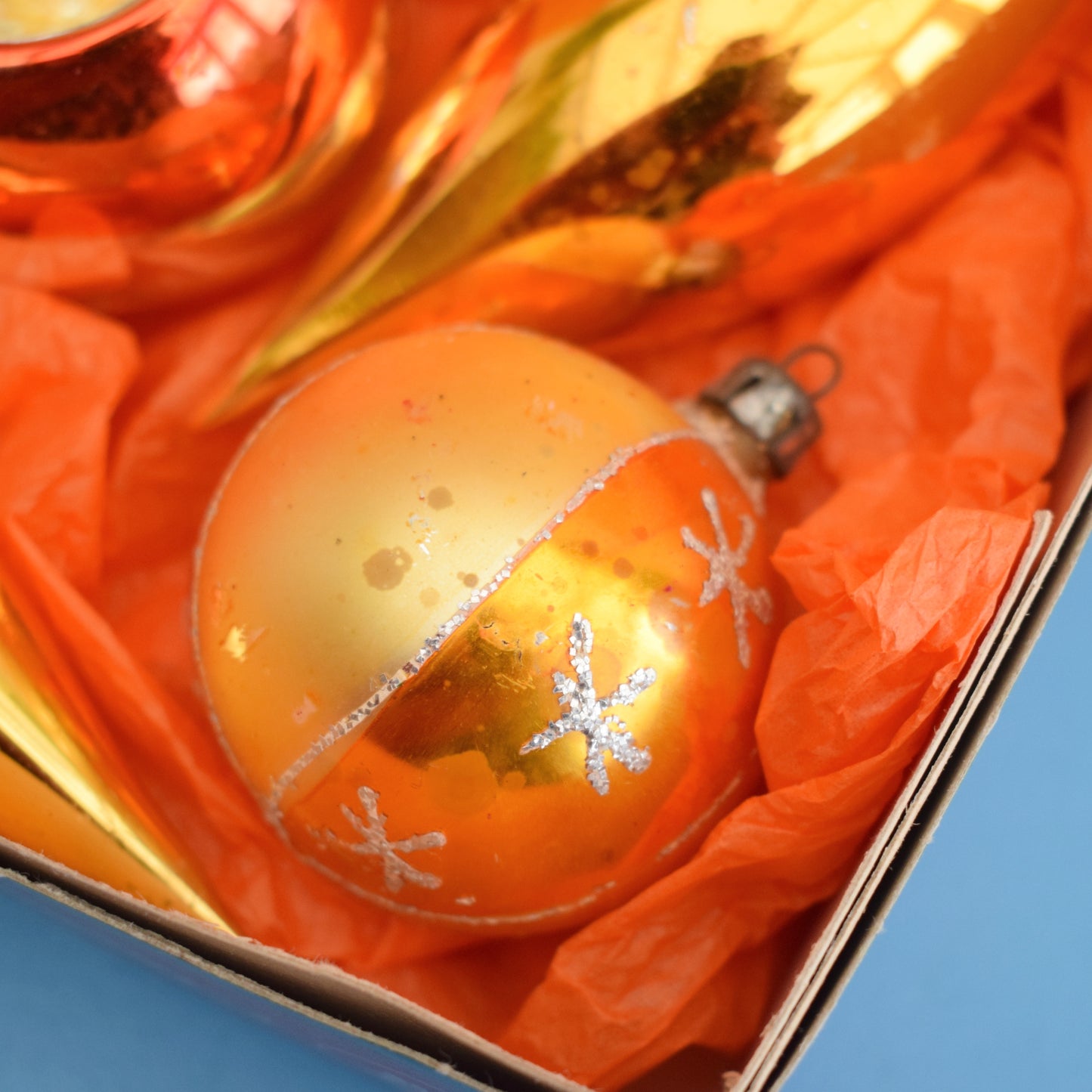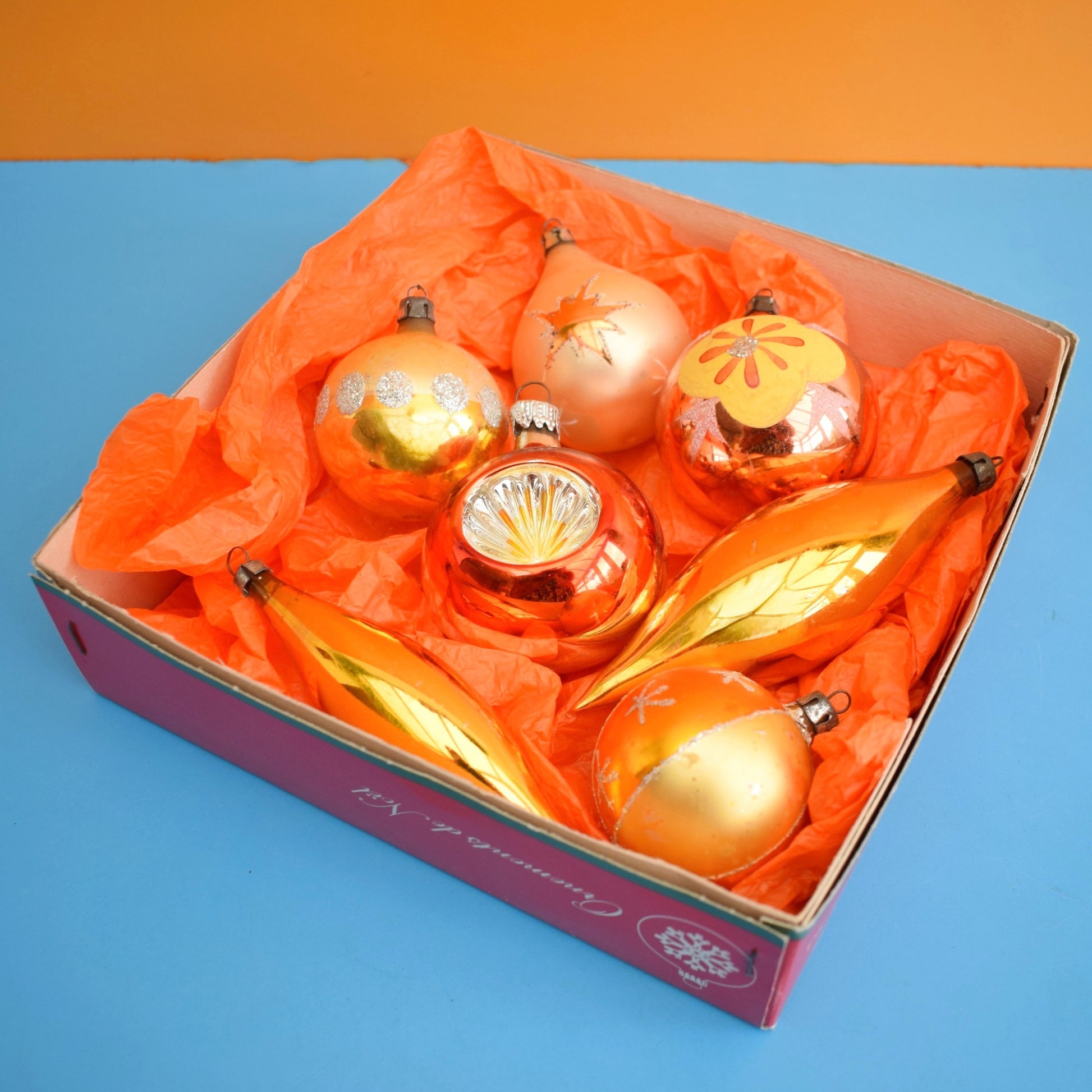 Vintage 1970s Glass Christmas Baubles - Orange / Gold