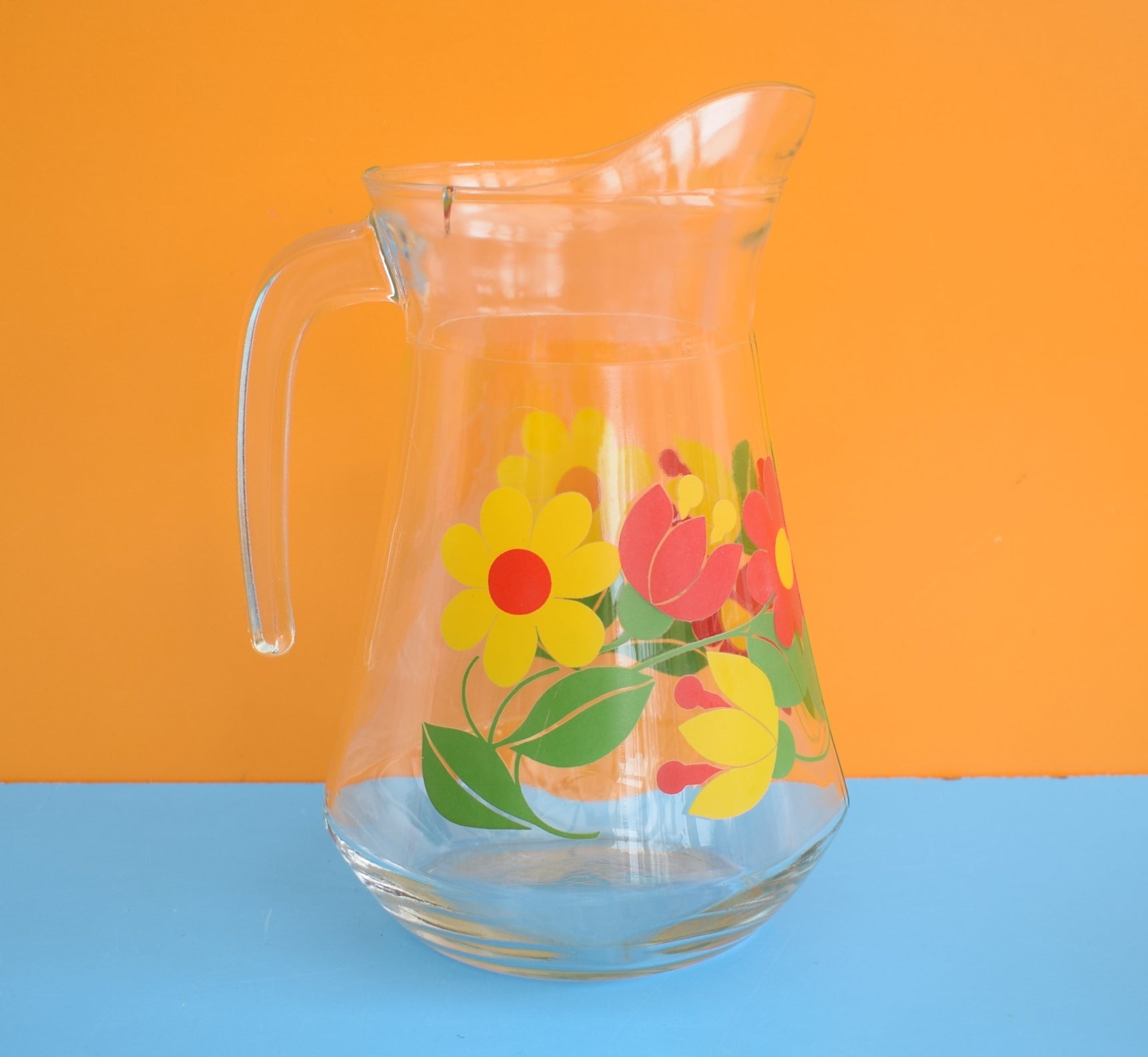 Vintage 1970s Glass Jug - Flower Power