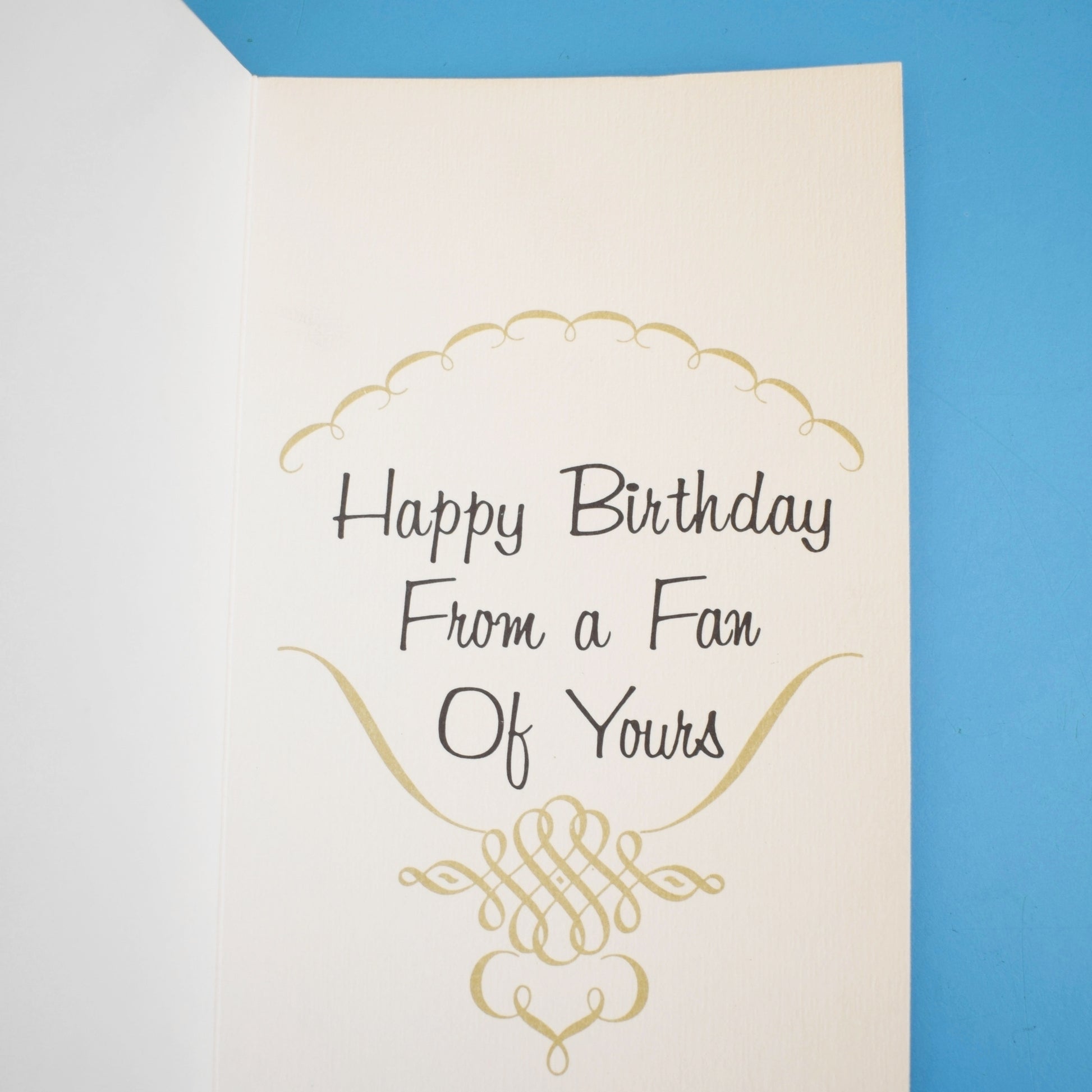 This vintage 1970s greeting card is a bright, cheerful piece of ephemera. The bold palette highlights a charming illustration and the friendly hand-lettered greeting "Happy Birthday from a fan of yours" inside — making it an ideal choice for birthday notes, party invites, or framed wall art in a retro-inspired home.