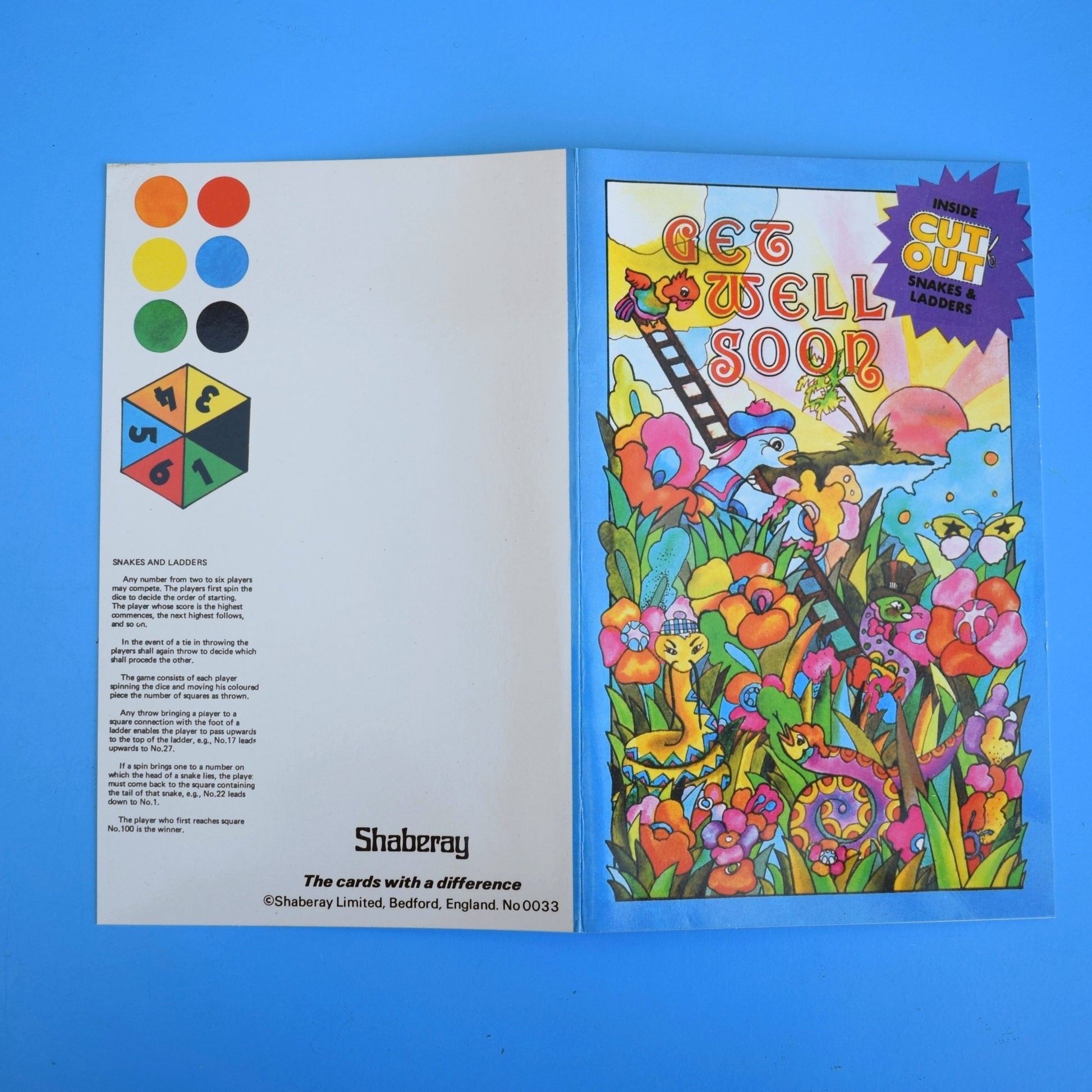Vintage 1970s Greeting Card - Cut Out - Get Well Soon- Snakes & Ladders