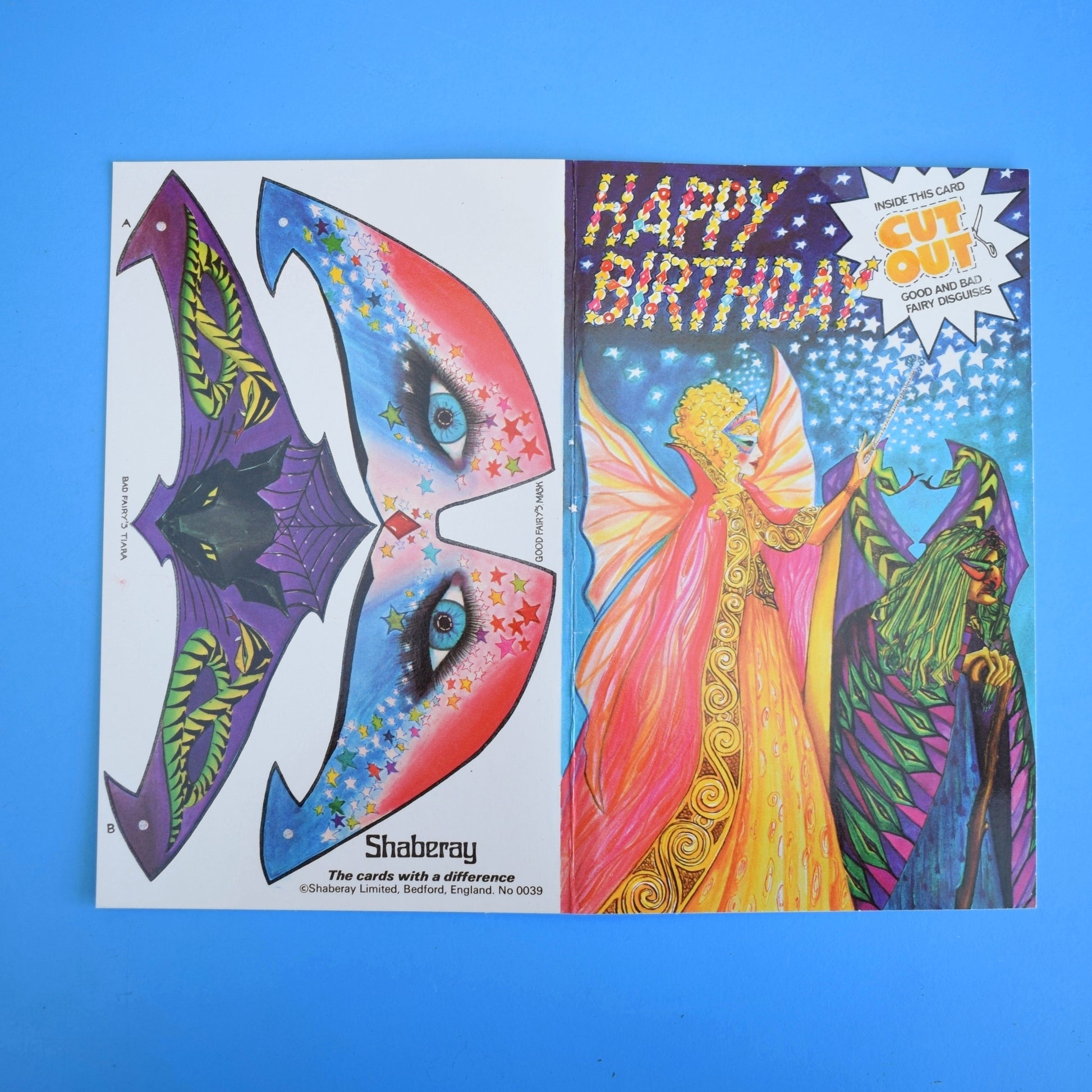 Vintage 1970s Greeting Card - Cut Out - Happy Birthday Fairy Masks