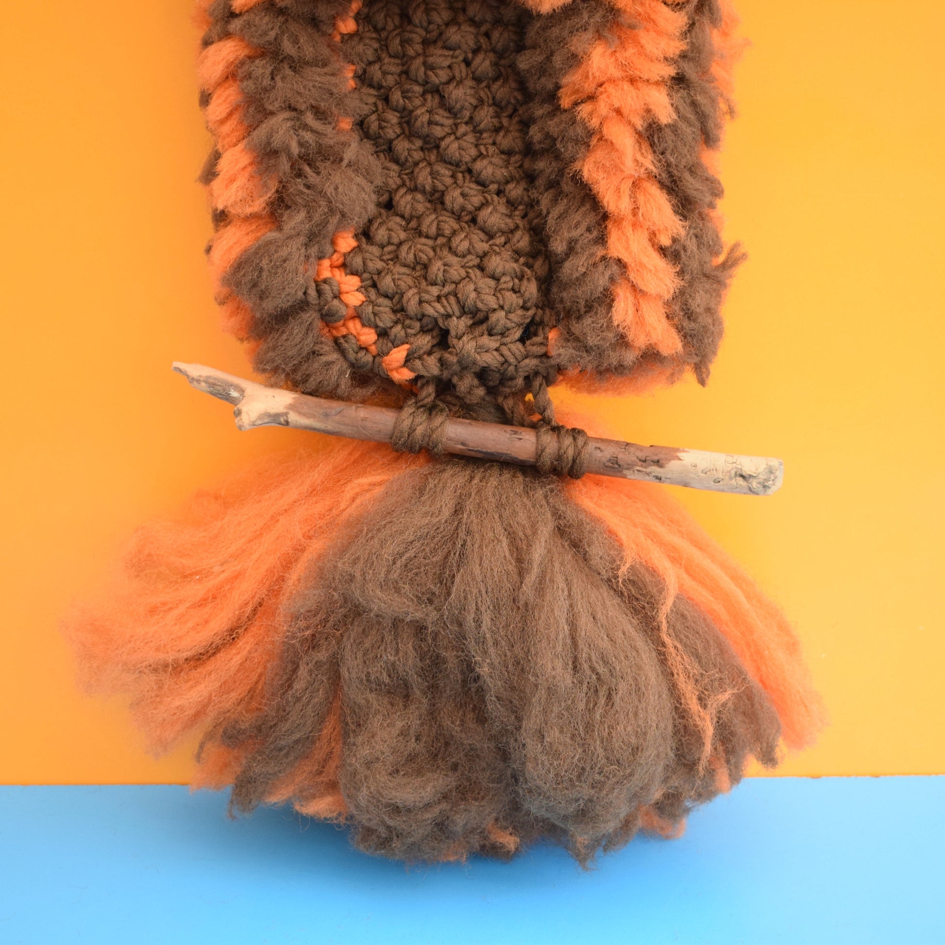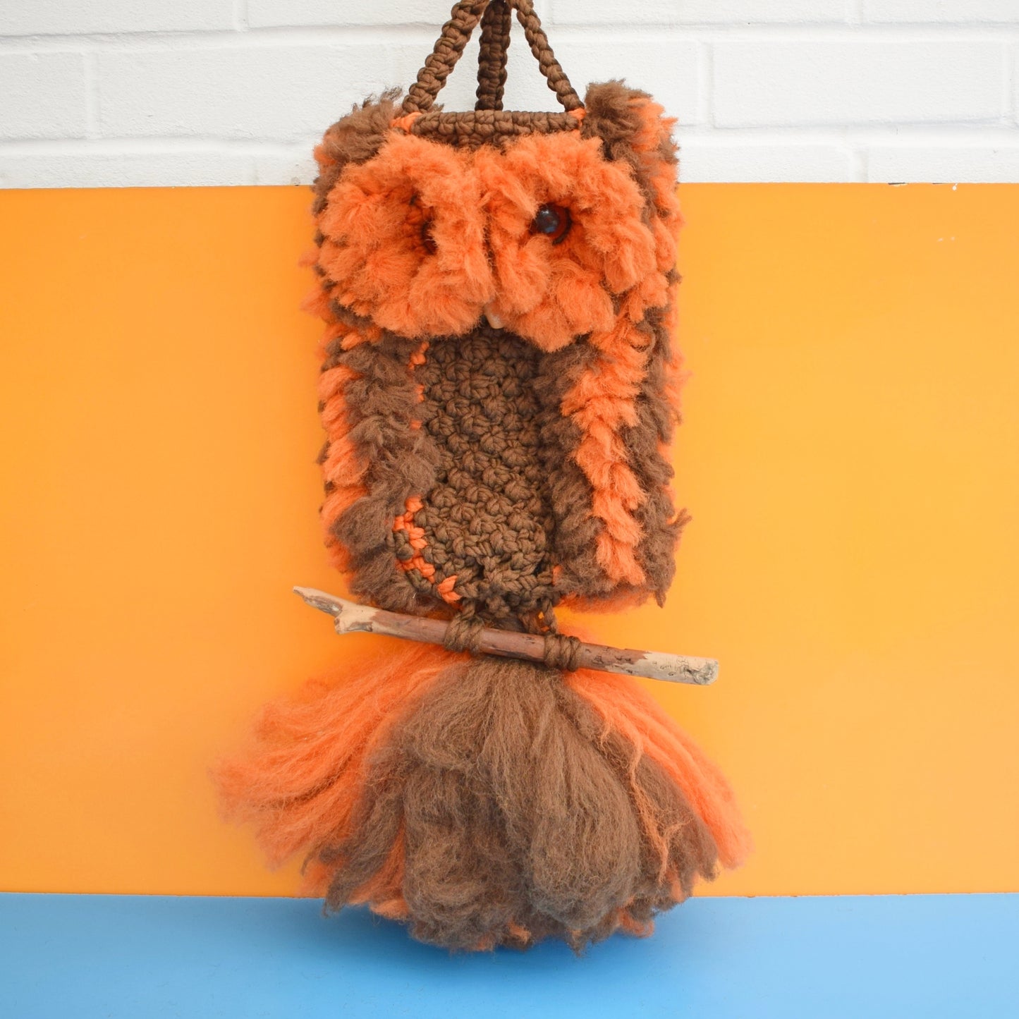 Vintage 1970s Handmade Kitsch Macrame Owl - Large