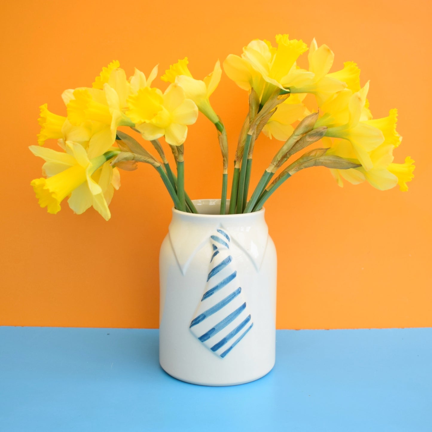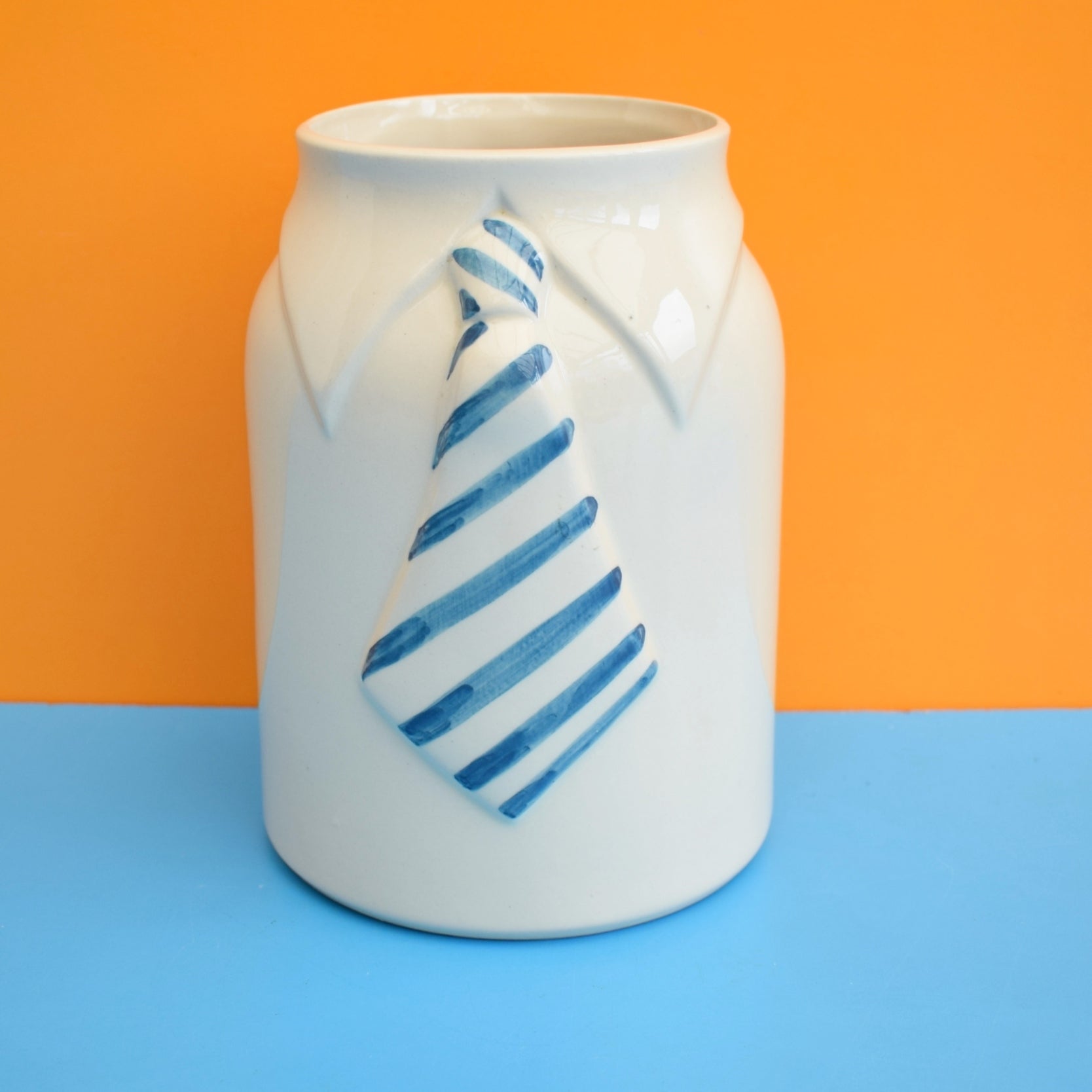 It's dated 1976 with a funky striped blue & white Tie design on a creamy white background