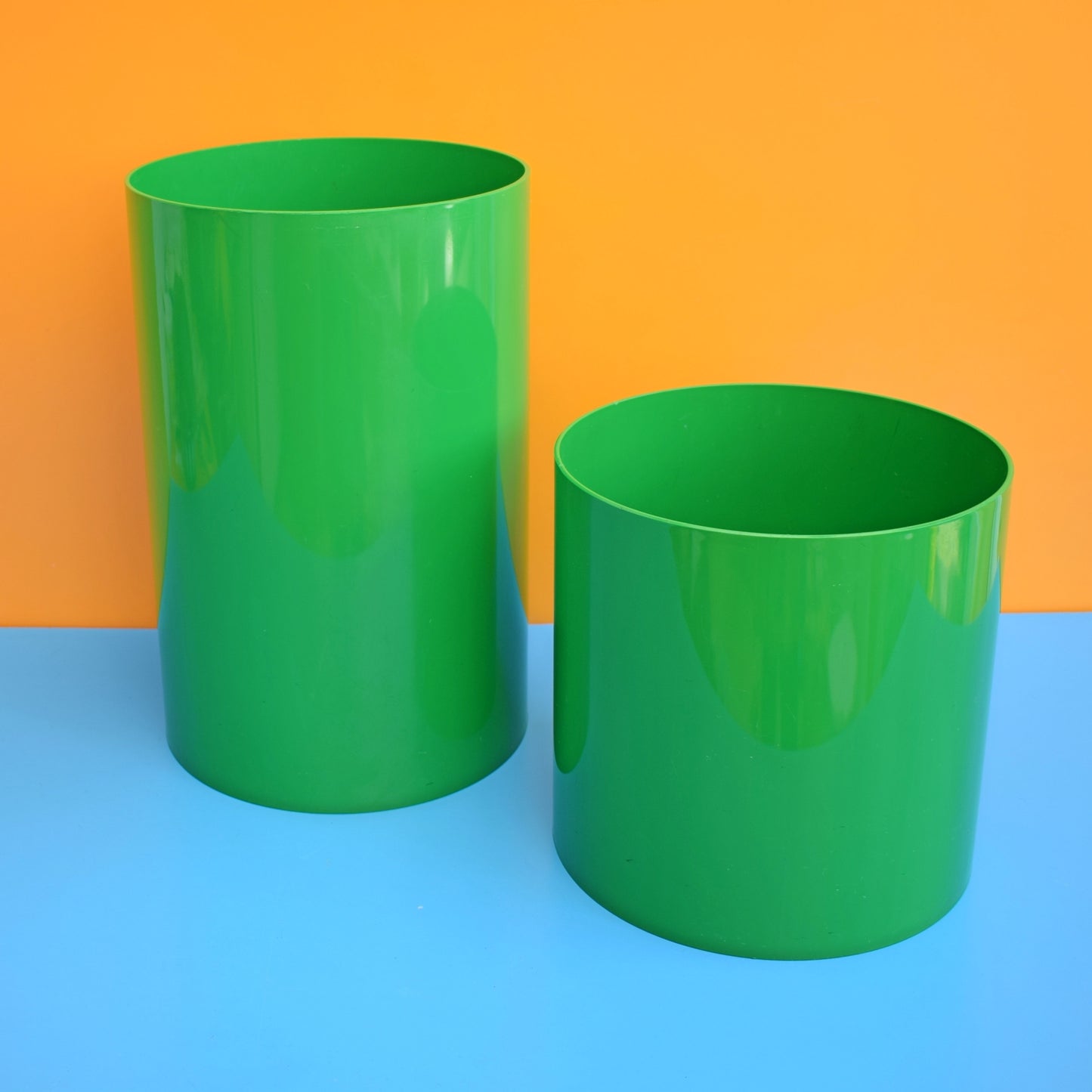 Taller measures 38cm high x 25cm in diameter, smaller is 24.5cm high x 25cm in diameter