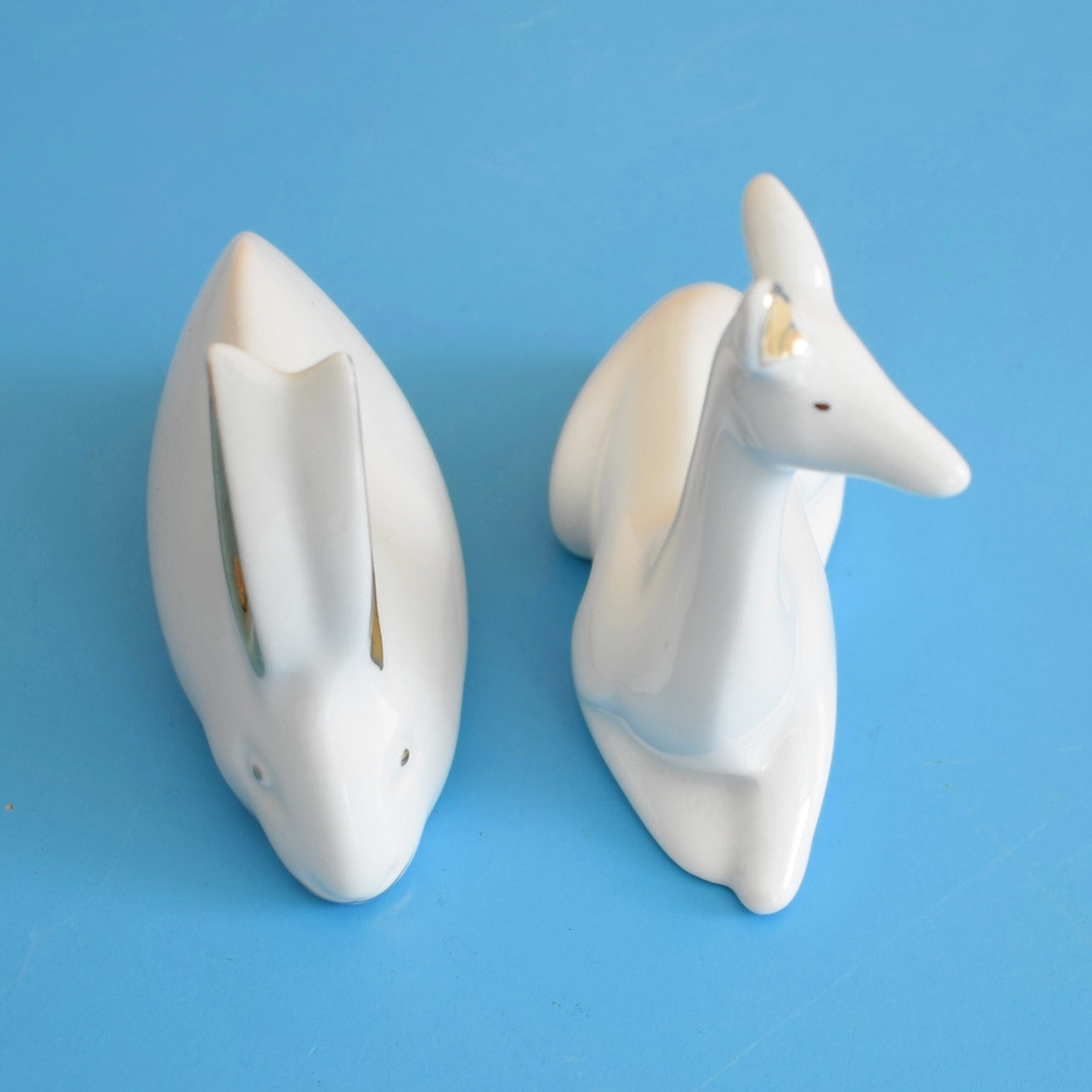 Vintage 1970s La Reine Royal Porcelain Ornaments - Spain - Rabbit / Deer