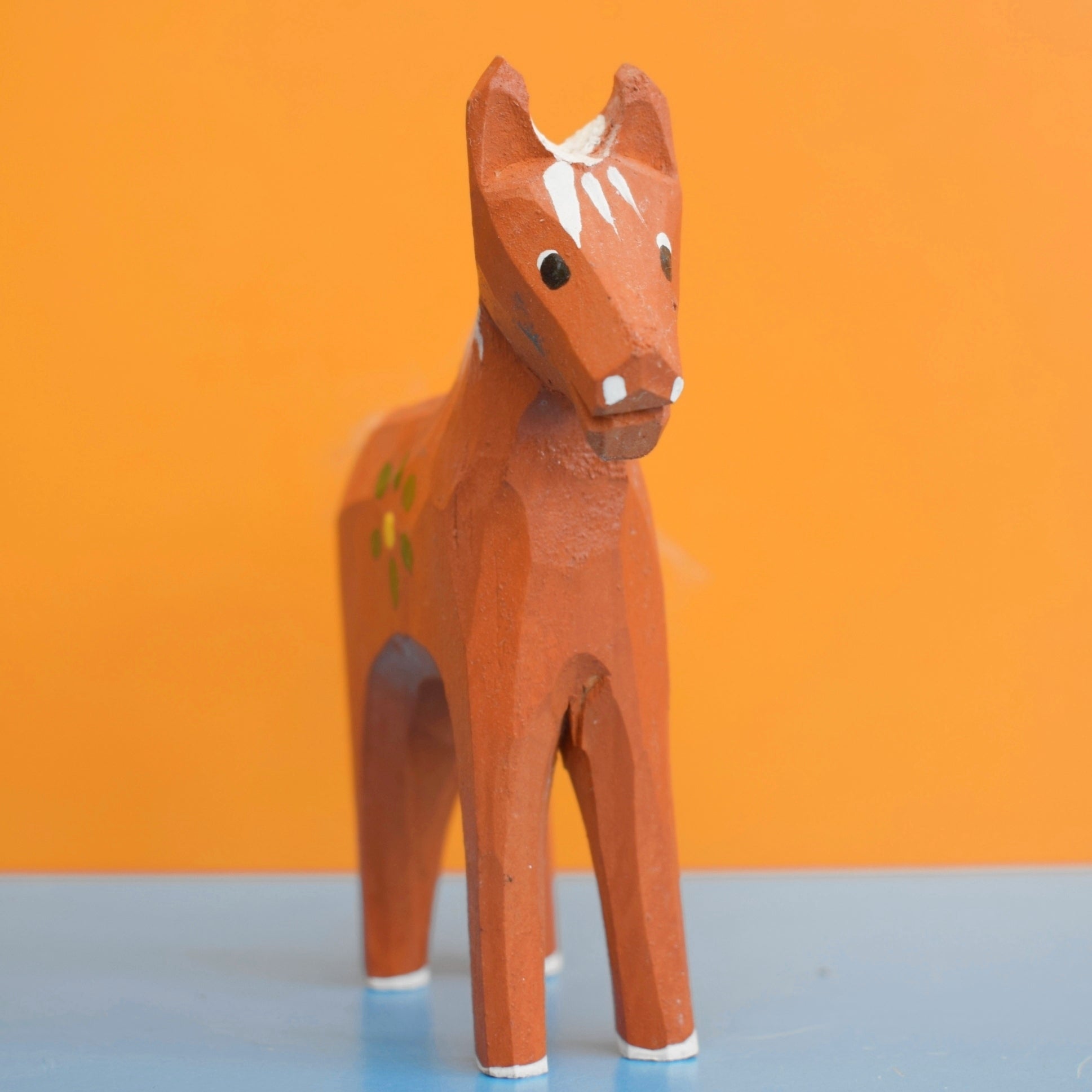 Vintage 1970s Medium Dala Wooden Horse - Sweden - Natural